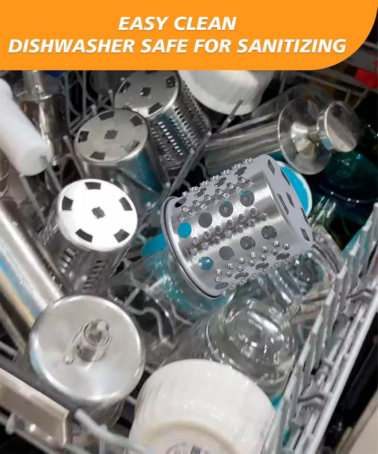 - Save Time and Effort : For its scientific design and stainless steel texture, this FavorKit cheese graters attachment works faster than slicing / shredding by hand or hand crank grater. From cheeses to fruits and veggies, it cuts your time on food prep. in half and more