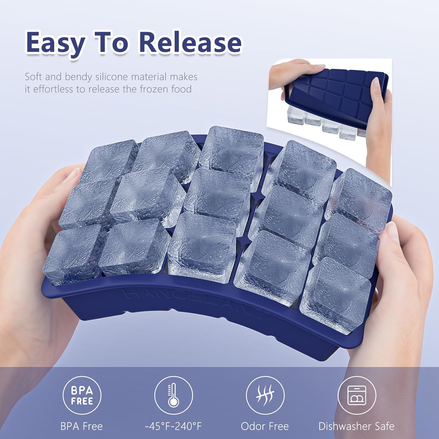 Silicone Ice Cube Tray 3 Pack, HANCELANT Ice Cube Mold, Ice Trays for Freezer with Lid for Whiskey, Baby Food, BPA Free, Easy Release
