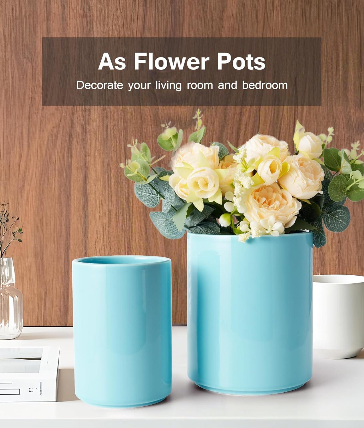 - 【Multi-Functional Utensil Caddy】 This kitchen accessory for your countertop can be used not only for organizing kitchen tools, but also as vases for flowers, makeup brush holders, as ice buckets, office supply organizers, and can seamlessly house coffee pods and stirrers on your bar countertop, or even as a handy countertop mini trash for quick cleanups like cracking and disposing of eggshells and garlic peels
