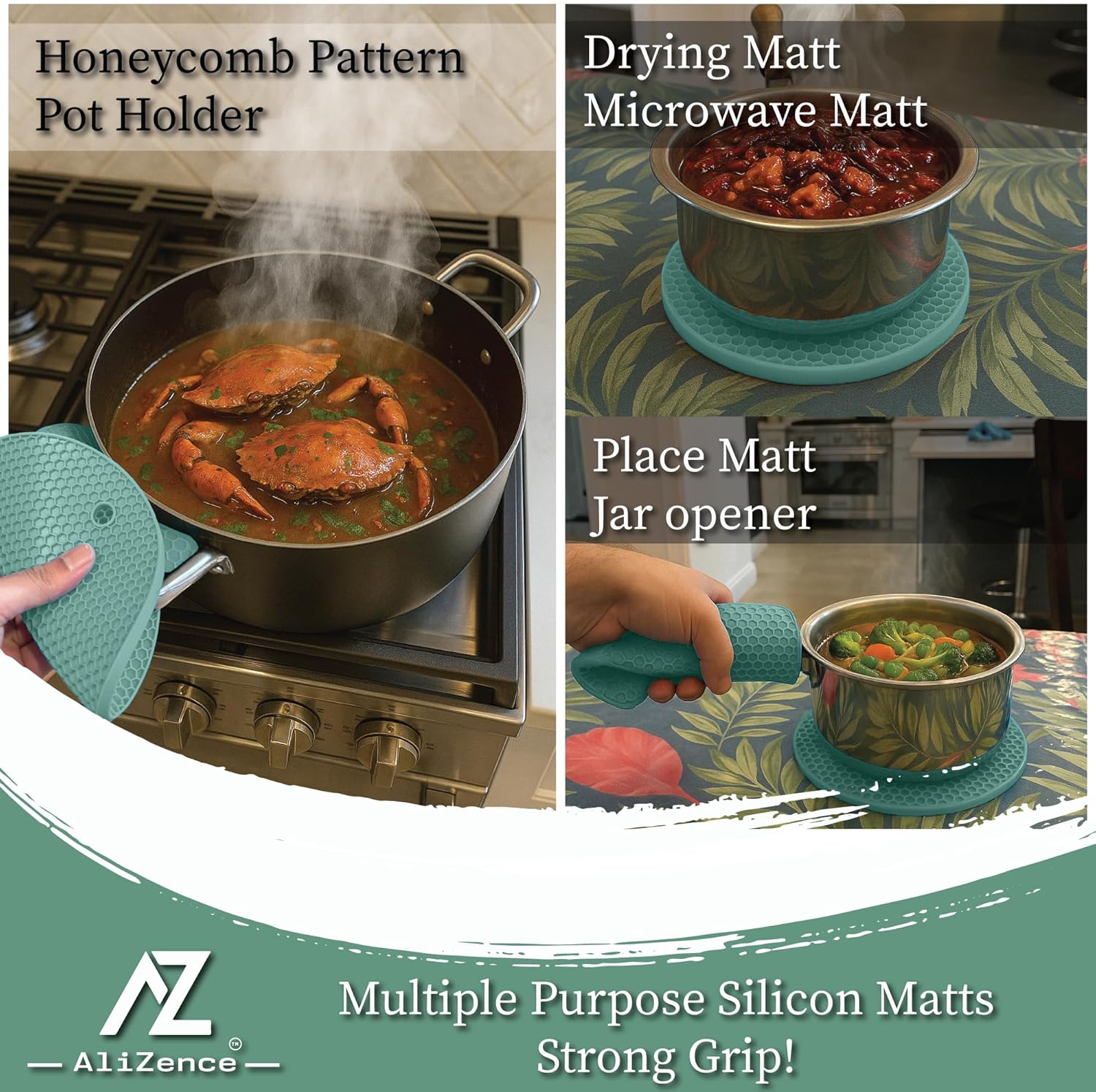 - Eco-Friendly & Safe: Sustainability is a core focus of the AliZence Kitchen Essentials 6-Piece Set. Made from non-toxic, BPA-free silicone, offering an environmentally responsible and safe solution for your kitchen. 100% Money Back Gurantee!