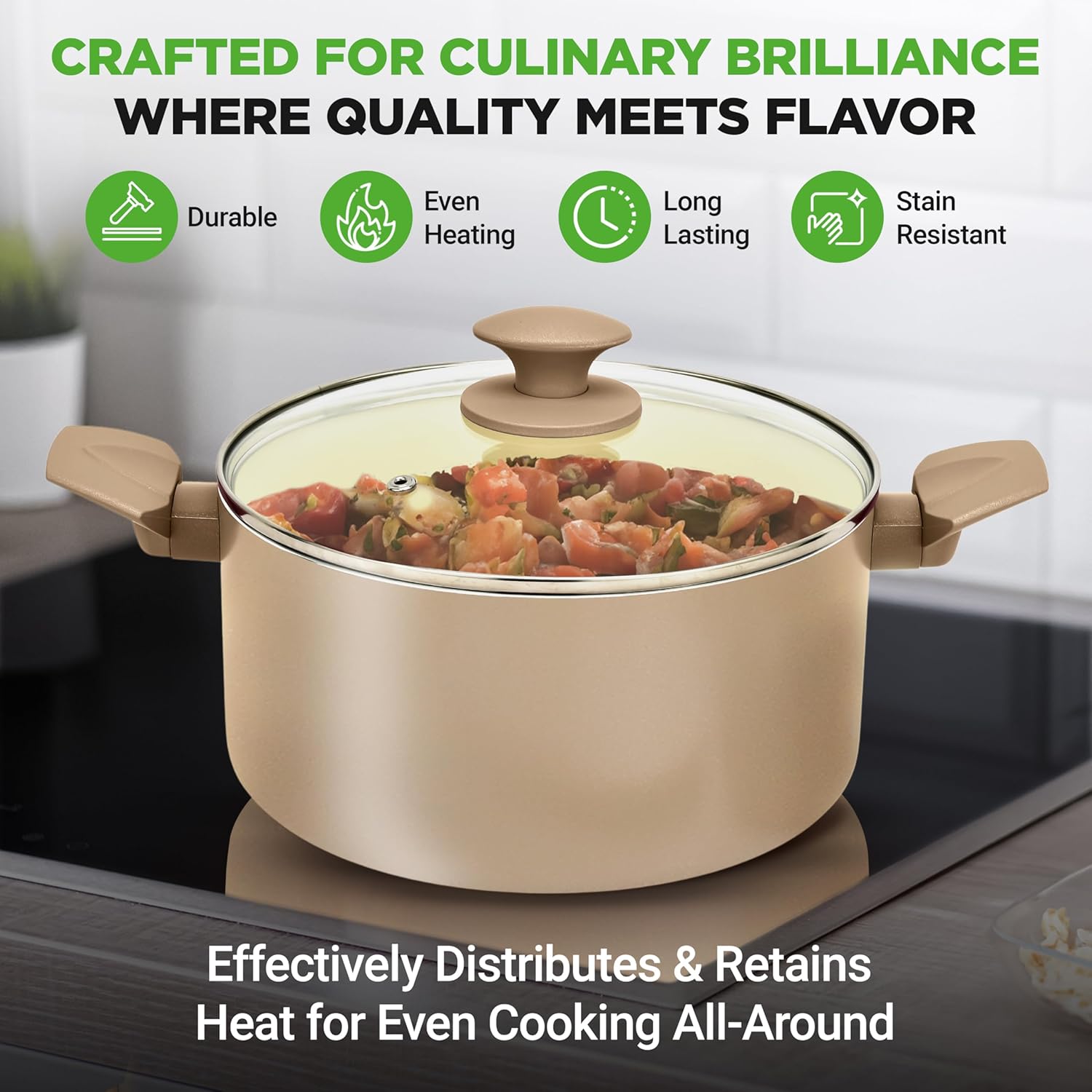 - EFFORTLESS COOKING AND CLEANING - The ceramic non-stick coating ensures food releases easily, reducing cleanup time. This non stick pots and pan set also features even heat retention for consistent, high-quality cooking results.