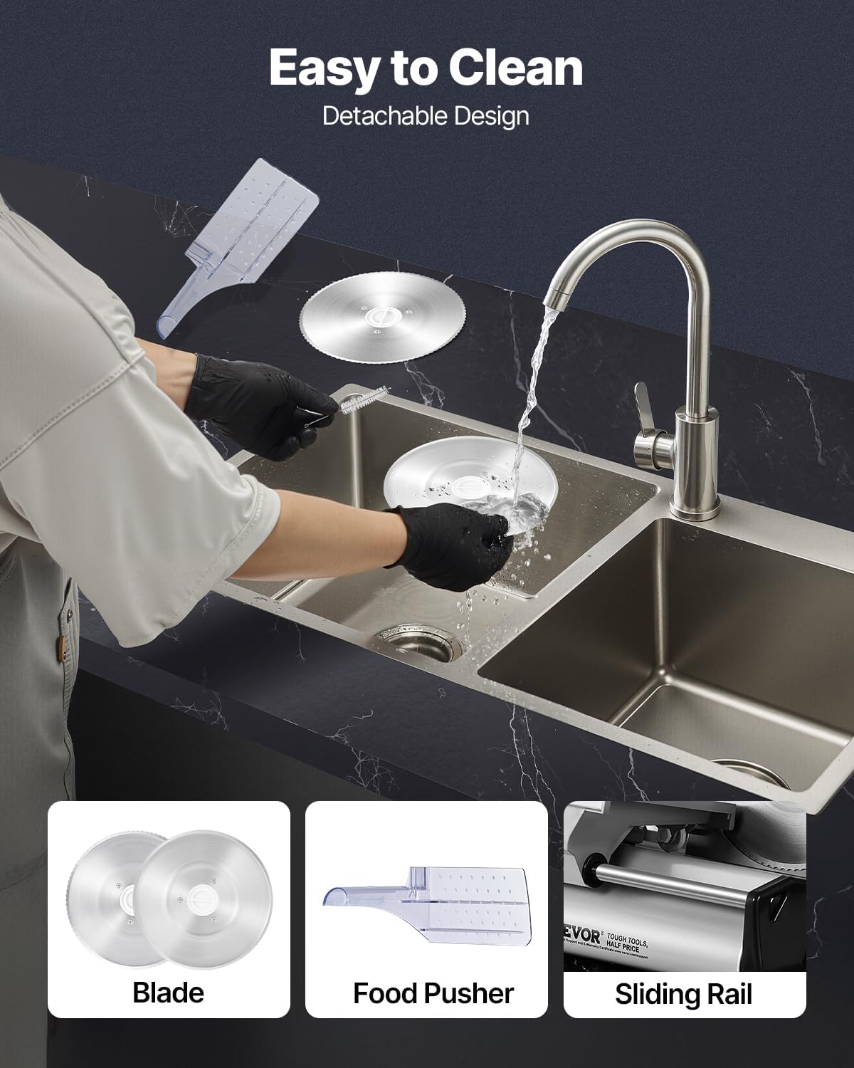 - Disassemble for Easy Cleaning: Crafted with food-grade materials for all food-contact parts, our meat slicer machine is designed for your convenience. It features a stainless steel tray that is easy to clean. The blade, food rack, and food pusher are easily detachable, making post-use cleaning a snap and keeping your kitchen spotless.