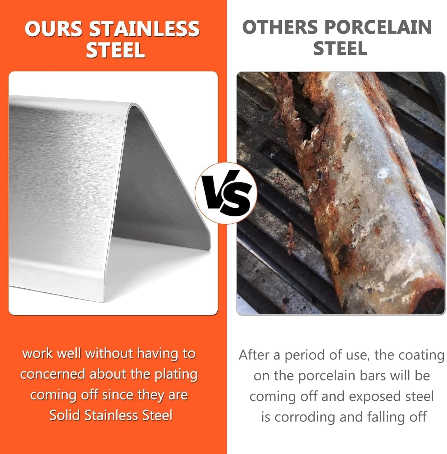 - đ„ăEVEN HEAT DISTRIBUTIONăThese SUS304 stainless steel flavorizer bars work their magic by preventing food from directly touching the flame. They act as a shield for your burner, ensuring gentle, even heat reaches every morsel. And with no worries about coatings peeling off like with porcelain bars, you can focus on what matters â creating unforgettable grilling memories.