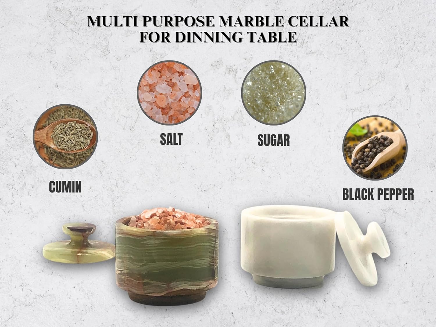 Premium Marble Salt Cellar with Lid 2 Pack | 3.5 oz Kitchen Storage Container | Elegant Cooking Salt Box | Spice Jar Keeper for Counter (White Green)