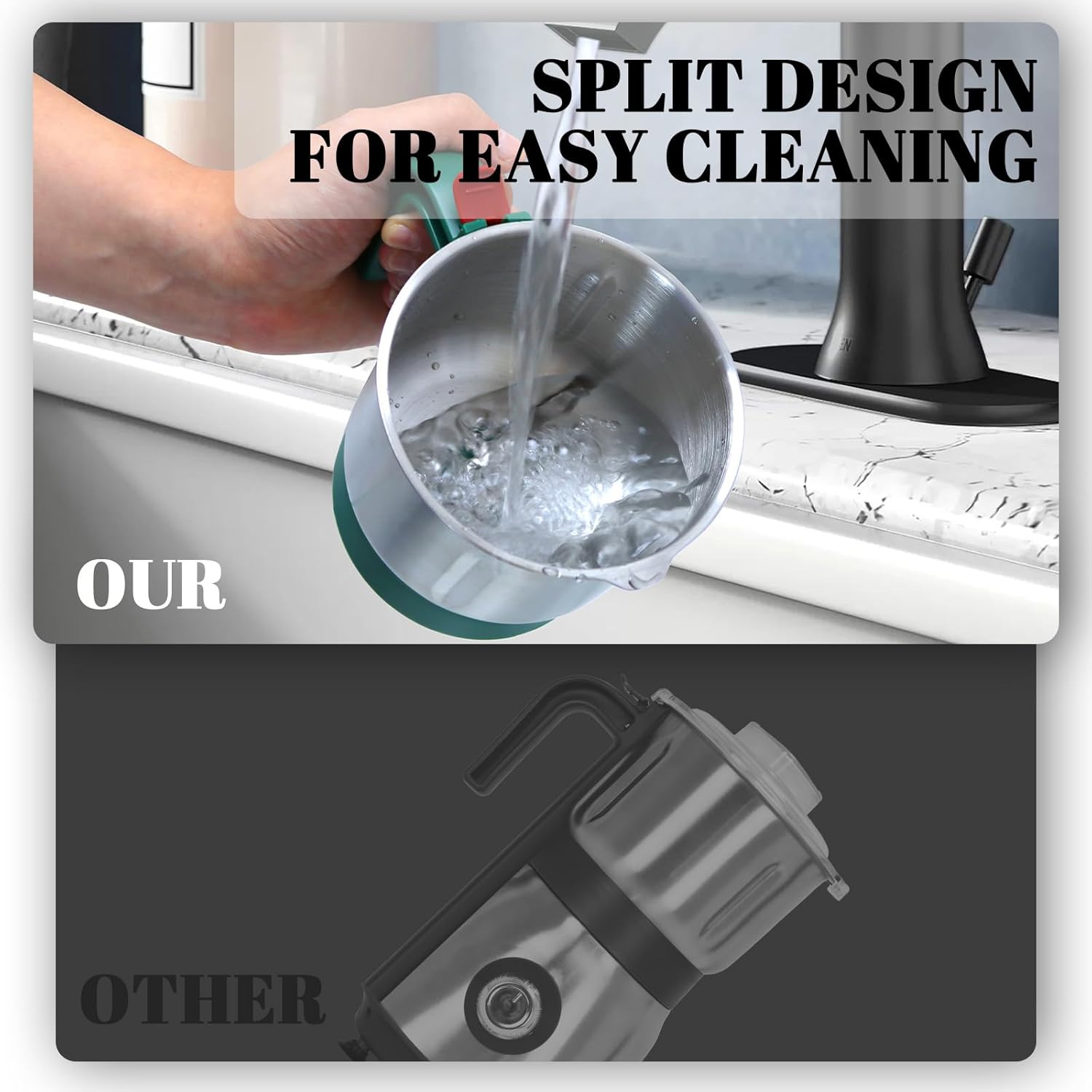- 3. Emphasize Versatility & Safety: This versatile grinder is perfect for both wet and dry ingredients. Grind spices, nuts, grains, and even make pastes with ease. For optimal performance, please allow the grinder to rest for 30 minutes after 15 minutes of continuous use.