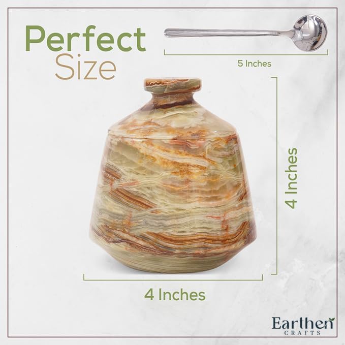 Marble Salt Cellar With Lid & Spoon Green Onyx 4" Salt Box, Stone Salt Container & Spice Jars, Stone Salt Holder for Counter, Spice Jar & Salt Jar