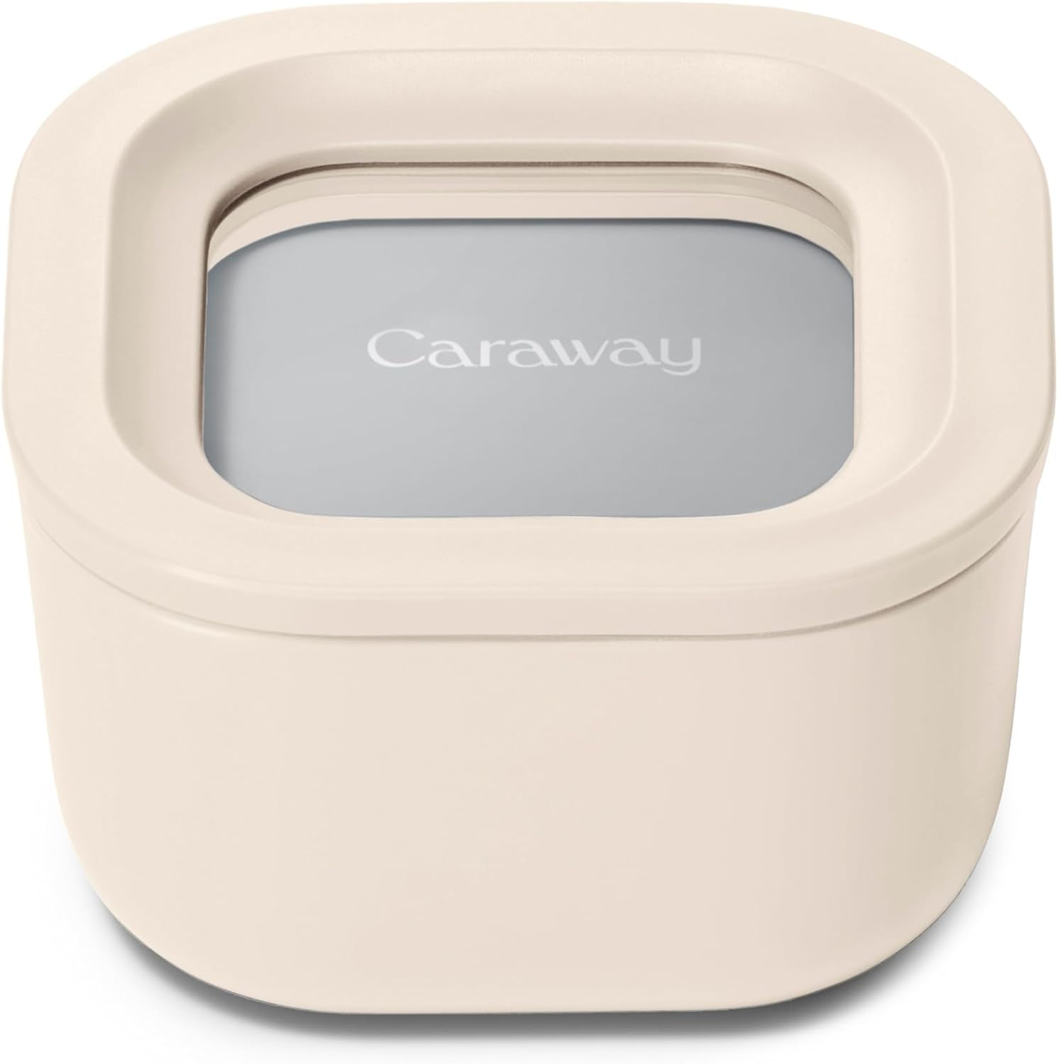 Caraway Mini Square Food Storage Container - 1.75 Cup Glass Storage Container for Food - Non-Toxic Ceramic-Coated Glass - Air Release Technology - Compact & Stackable Design - Cream