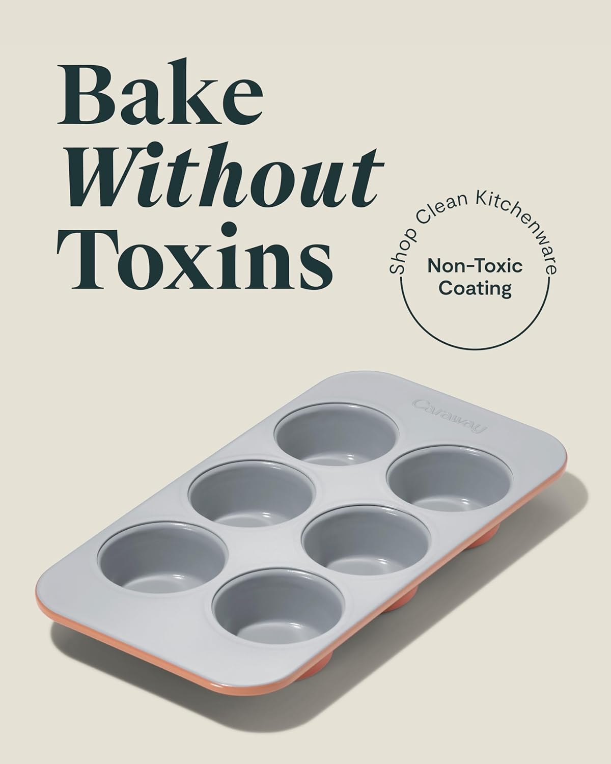 Caraway Nonstick Ceramic 6 Cup Muffin Pan – Non-Toxic, PTFE & PFOA Free – Oven Safe – Aluminized Steel Core – Small Muffin Pan for Baking Cupcakes, Muffins & More - Perracotta