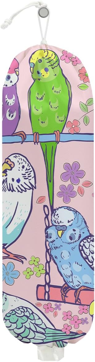 Parrot Plastic Bag Holder, Wall Mount Grocery Bag Holder, Plastic Storage bag, Pull Rope Free Adjustment, Plastic Bag Holders for Grocery Bags, Plastic Bag Dispenser for Home Kitchen