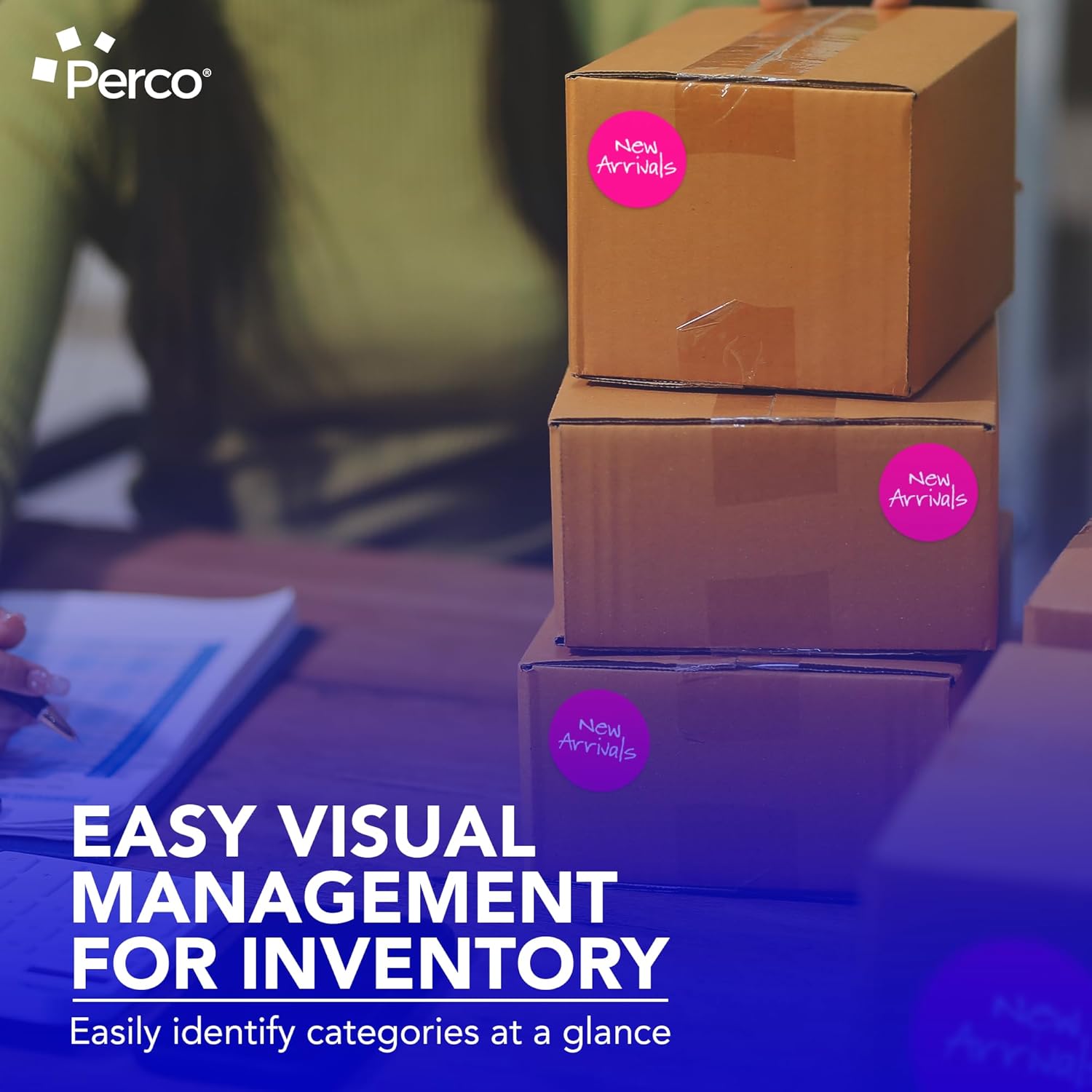 Perco Fluorescent Pink 3-Inch Round Circle Dot Sticker Labels - Multi-Roll Pack (3 Rolls, 500 Labels Each) - Permanent Adhesive, Vibrant Colors, Strong Hold - Perforated for Easy Use - Made in USA