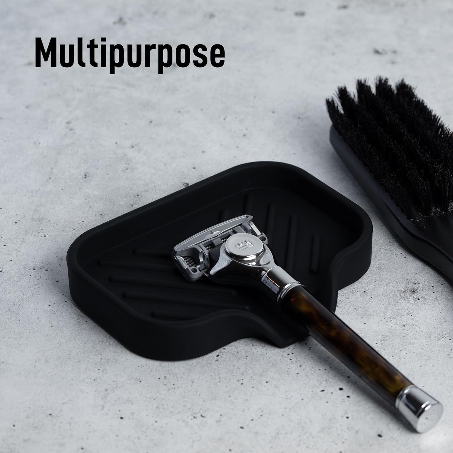 - MESS-FREE COUNTERTOPS: Keep your sink area tidy and free from soap residue with our small silicone sponge holder. Measuring 4.9 x 3.3 inches, this compact tray is ideal for holding a sponge, scrubber, soap bar, or small brush. Its space-saving design is perfect for use in kitchens, bathrooms, laundry rooms, or vanities—great for organizing small essentials like jewelry, makeup, or accessories.