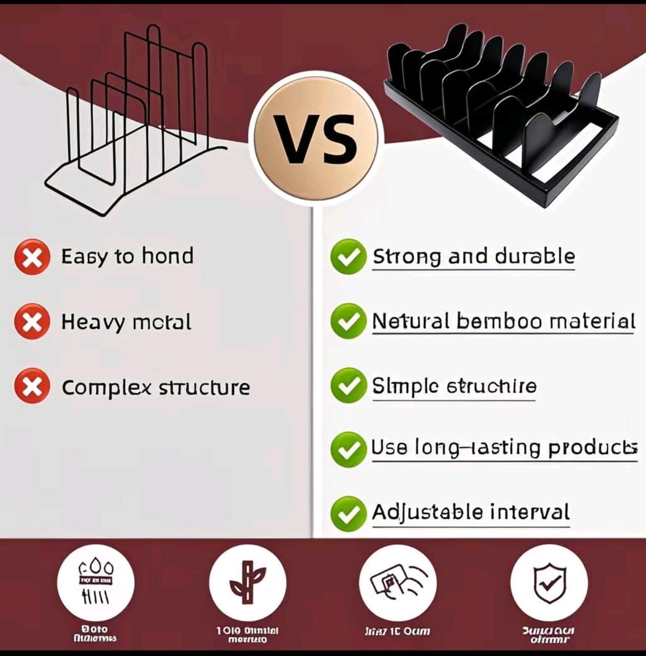 Bamboo Pot Lid Organizer for Cabinet & Kitchen Counter, Pan Lid Organizer Inside Cabinet, Pot Lid Holder, Sheet Pan Rack, Adjustable Pot Cover Holder Rack for Countertop, Under Cabinet Black