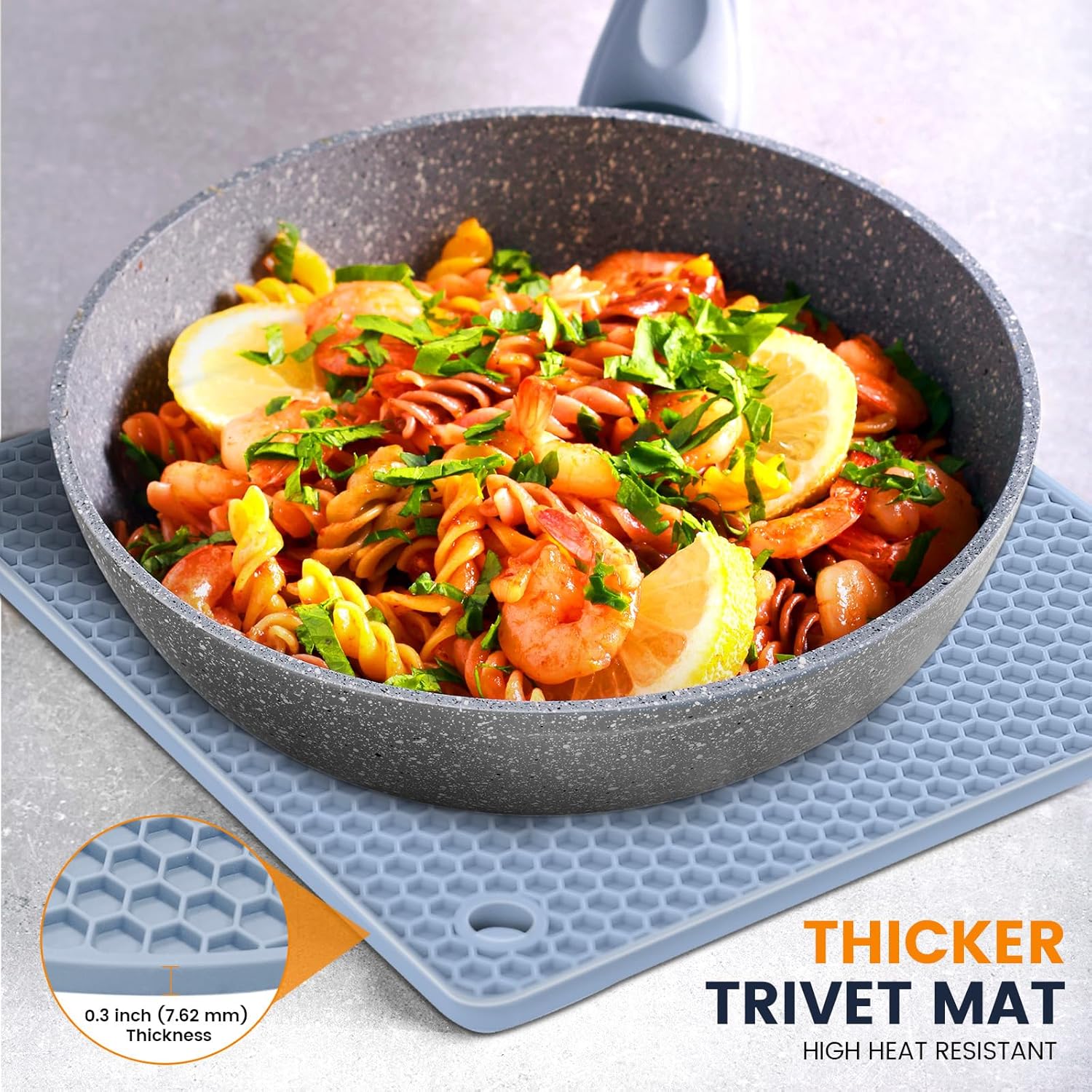 Silicone Trivet Mats 4 Heat Resistant Pot Holders Multipurpose Non-Slip Hot Pads for Kitchen Potholders, Drying mat, Jar Opener, Spoon Holder, Coaster.(Blue)