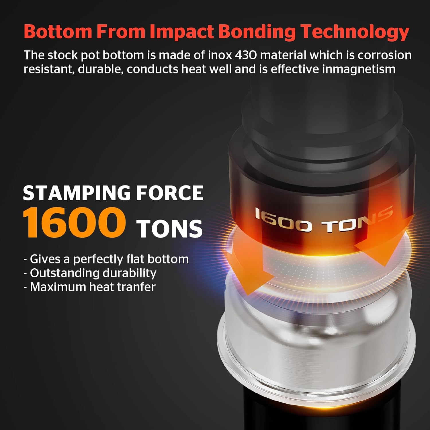 - [Heat Distribution] - Our stainless stock pot is carefully crafted with 3-ply base, so you can cook your meals perfectly with the optimal degree of effective heat distribution. Whether youโre simmering, boiling, or stewing, you can trust that this stock pot is the perfect tool for you.