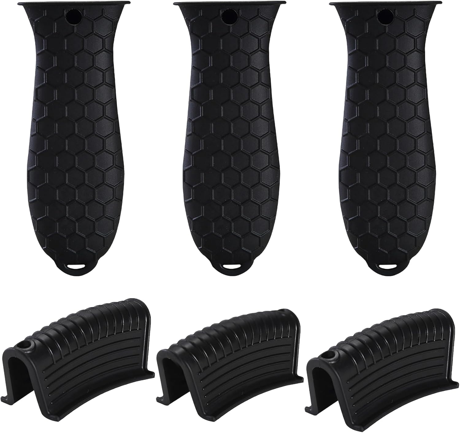 - Non-Slip Design-The Silicone Cast Iron Skillet Handle Holders adopt to honeycomb anti-slip design. Specially designed anti-slip texture and internal silicone ribbing design on the handle for more security when moving heavy hot pans, prevent falling/slip away during use.