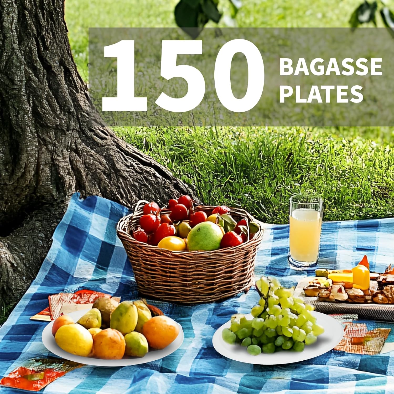 Compostable Paper Plates 9 Inch - 100% Biodegradable, Heavy Duty Eco-Friendly Disposable Plates for Camping,Parties, Weddings, BBQ (150 Pack) (9" Natural Brown)