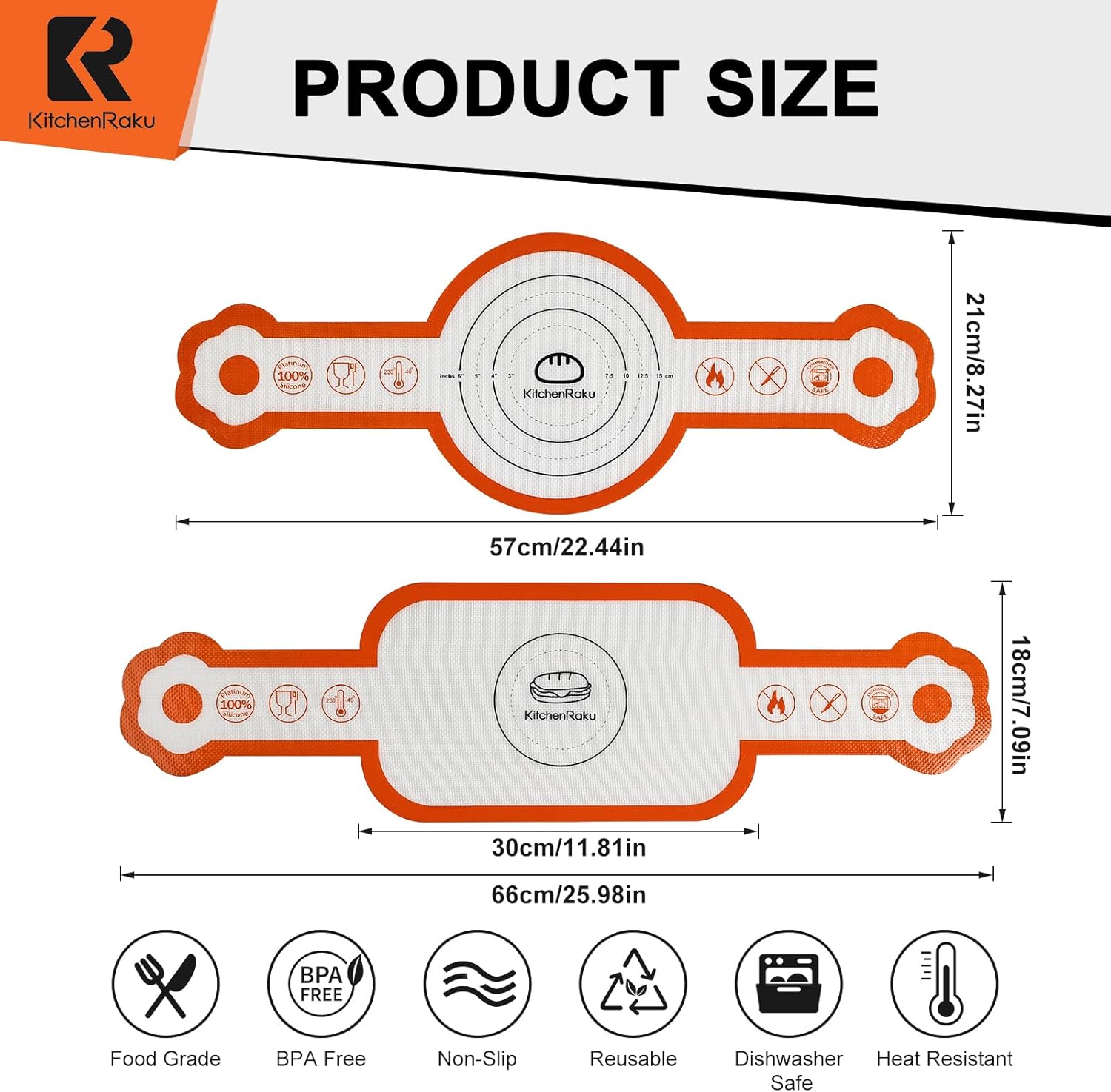 - 【Premium Platinum Silicone Baking Sling】Our Silicone baking mat is crafted from premium platinum food-grade silicone and reinforced fiberglass, withstanding up to 500°F heat while resisting color change or odors. Fully vulcanized for longevity, it outperforms ordinary mats, ensuring reliable use bake after bake.