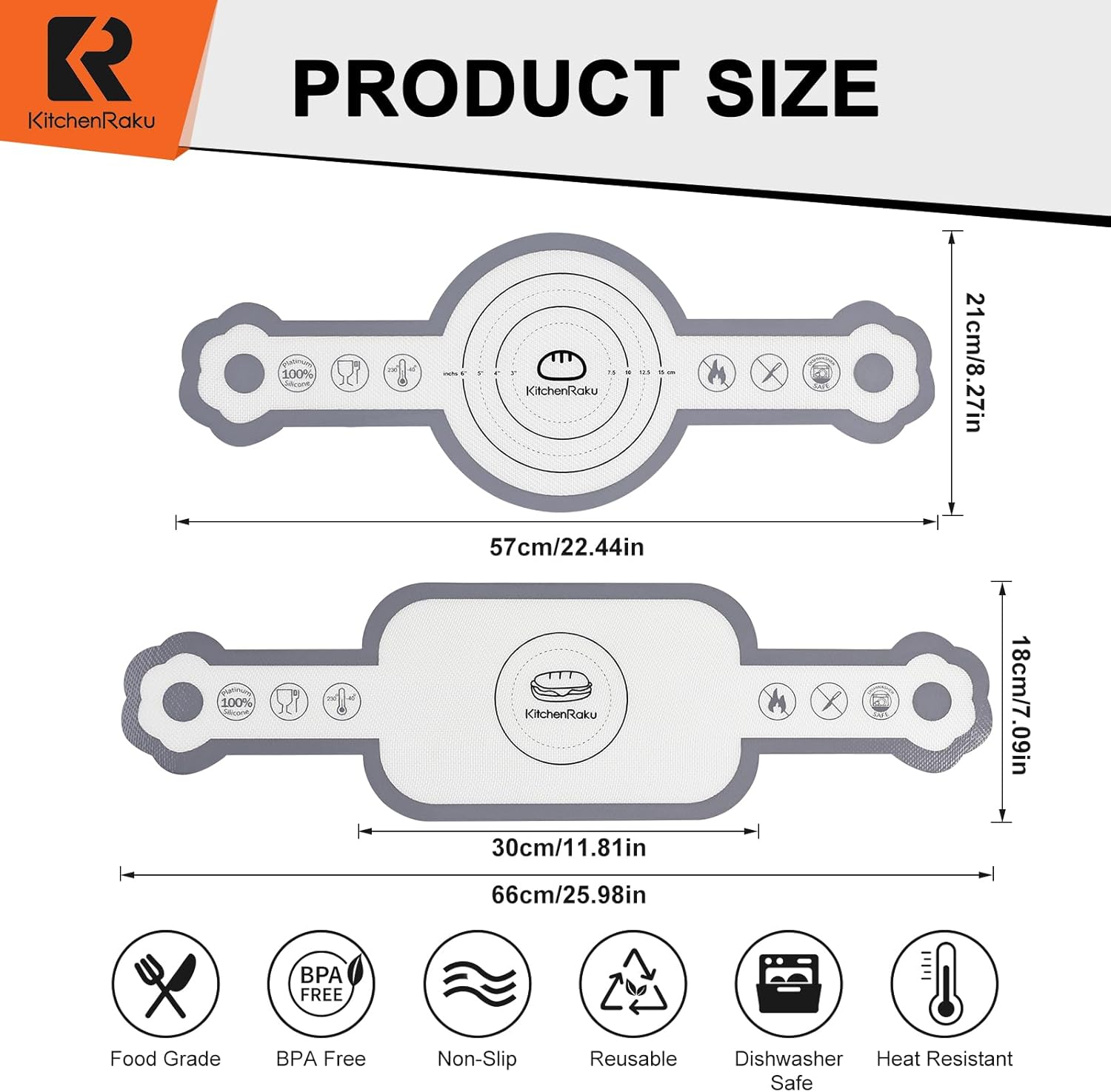 - 【Premium Platinum Silicone Baking Sling】Our Silicone baking mat is crafted from premium platinum food-grade silicone and reinforced fiberglass, withstanding up to 500°F heat while resisting color change or odors. Fully vulcanized for longevity, it outperforms ordinary mats, ensuring reliable use bake after bake.