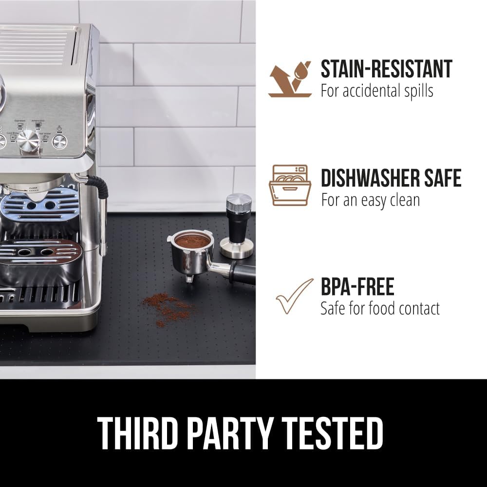GORILLA GRIP Silicone Coffee Mat, 18x28, Espresso Drink Bar Station Accessories, Waterproof Heat-Resistant Dish Drying Mats, Stay in Place on Kitchen Counter, Home Kitchen Decor Essentials, Black