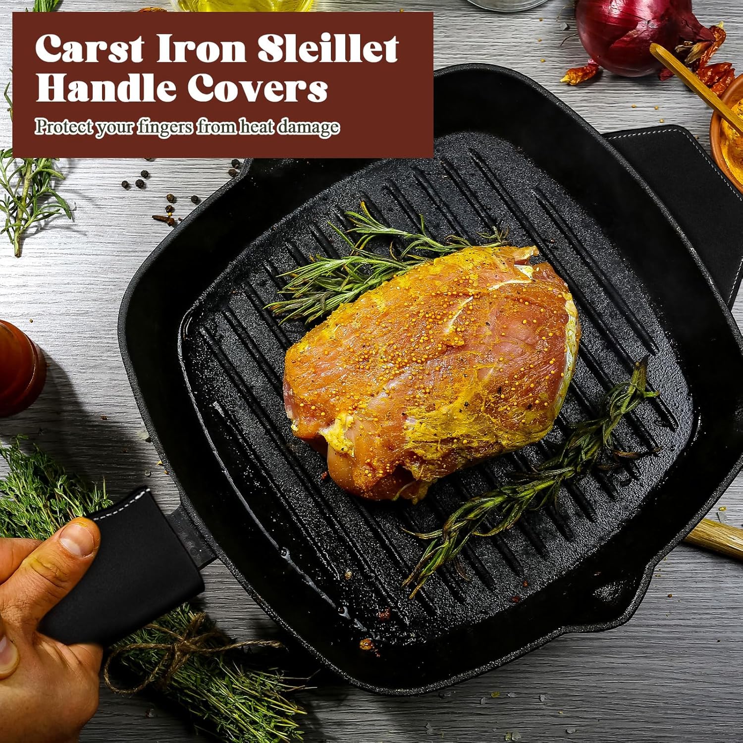 - Widely Applicable: our handle covers fit most cast iron pots, pans and skillets ideally; They can fit the handles of cast iron skillets and other cookware tightly, making the handle covers comfortable