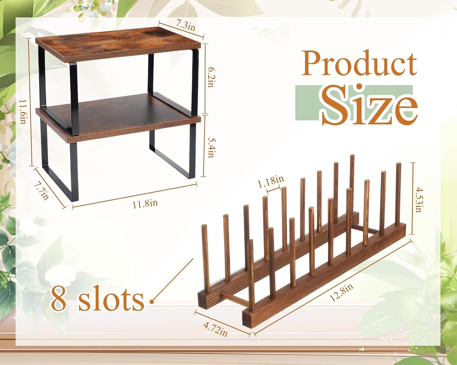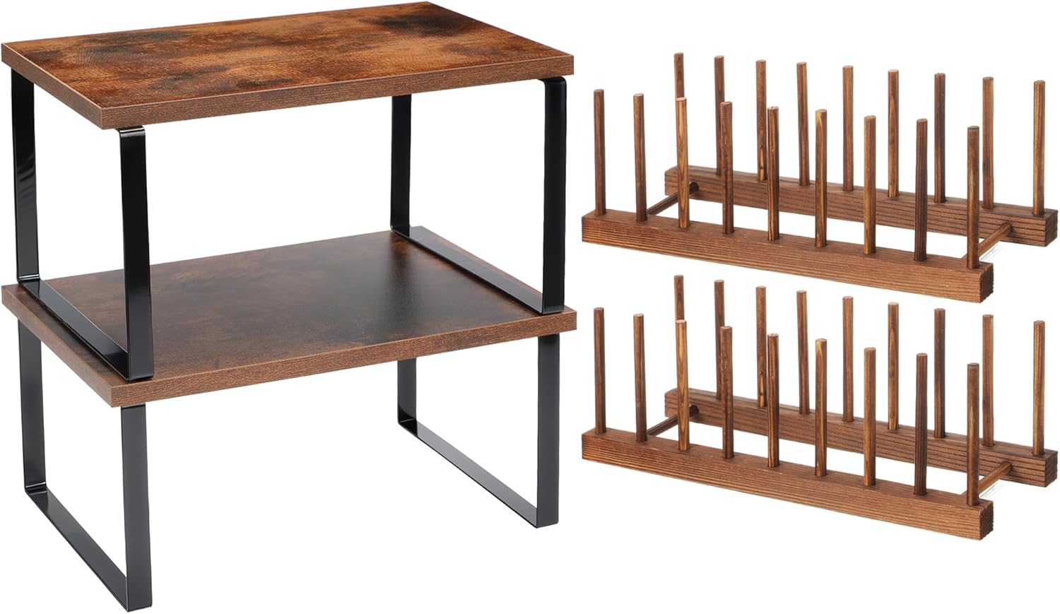 - Value Package Set: the package includes 2 sets of kitchen cabinet organizer shelf and 2 pcs bamboo dish drying racks; Multifunctional combination meets your different personal storage needs, avoids a messy kitchen, and is a good helper in your life