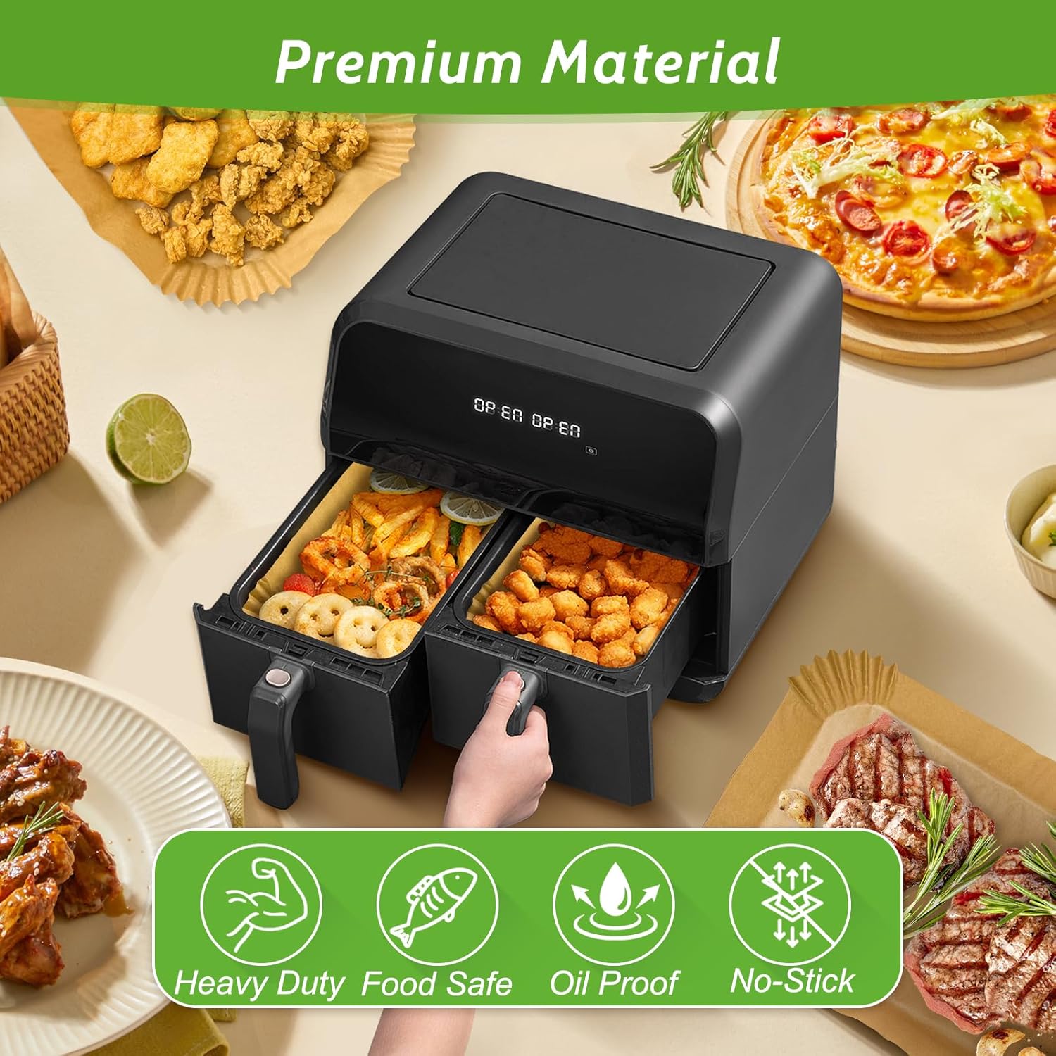 - 【Food Safe】:Made of premium food grade unbleached natural paper and silicone coating, these air fryer liners are BPA-Free & PFAs-Free, they won’t release harmful substances during your baking.