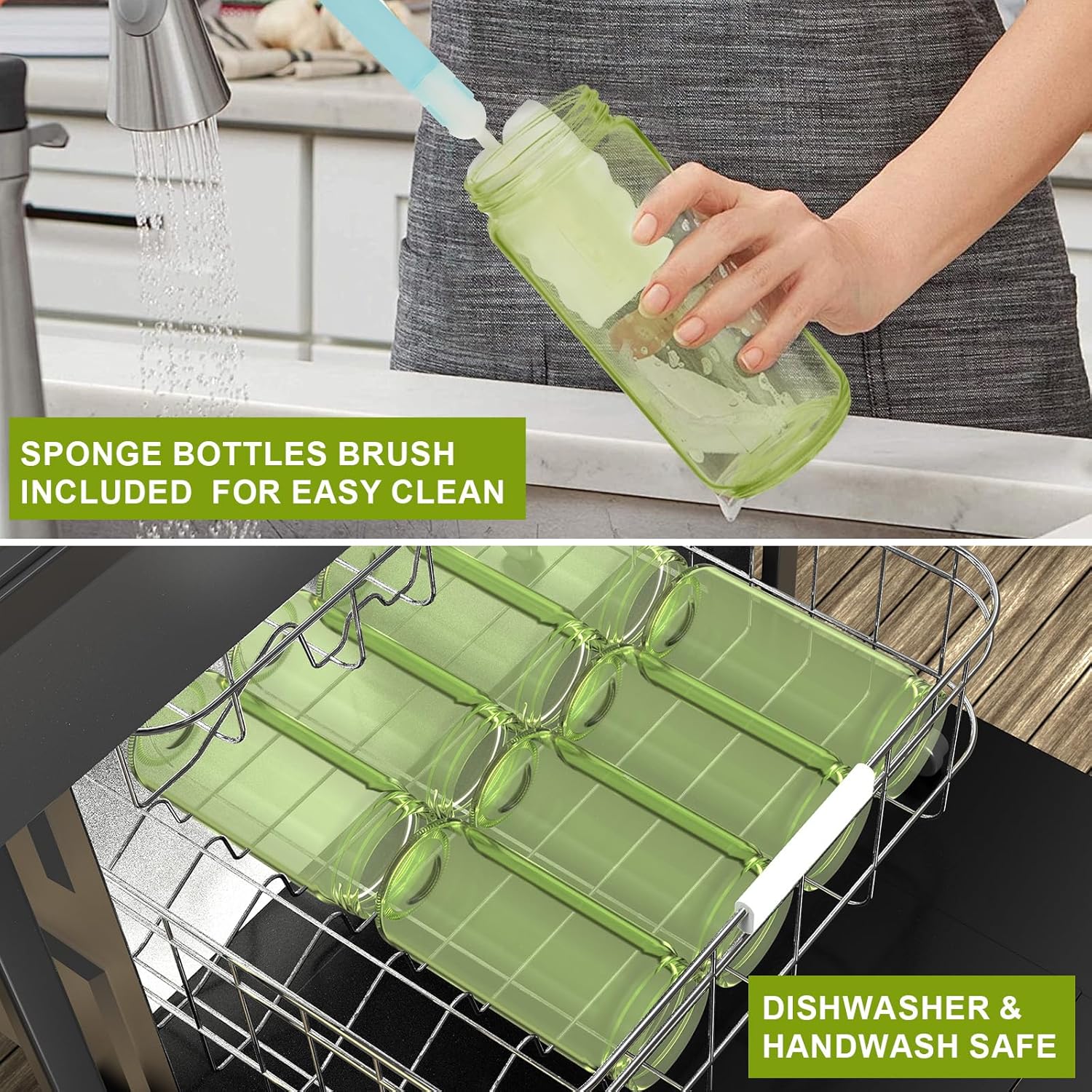 Ruckae Green 16oz 10 Pack Juice Bottles, Glass Bottles Juicing with Lids, Smoothie Cup Lids and Straws, Water Bottle Mason Jar Drinking Glasses for Juicing, Smoothies, Kombucha