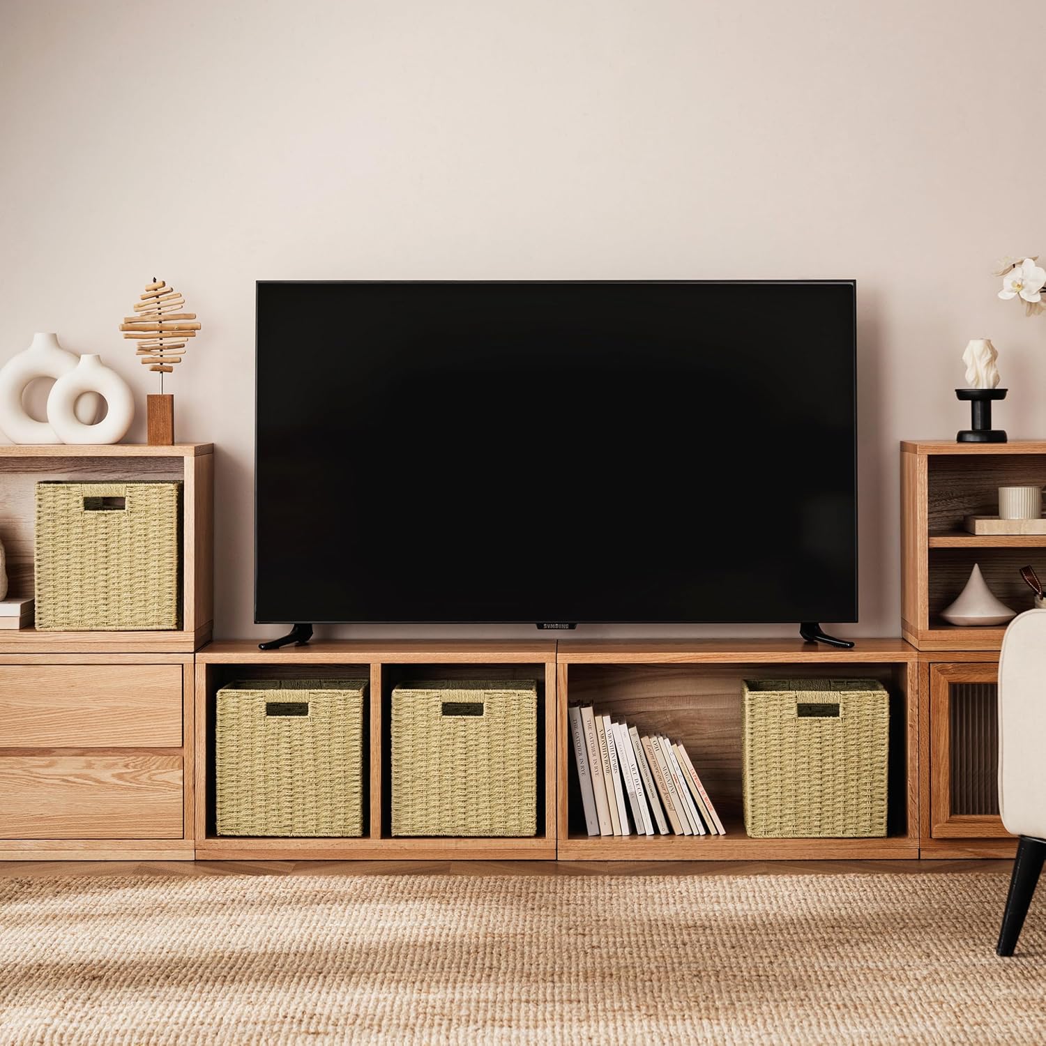UBBCARE 3 Pack Wicker Basket, 11L×11H×10.5W inch Woven Paper Rope Storage Baskets for shelves, Foldable Cube Storage bin with Handle, Storage Basket for Organizing & Decor, Natural
