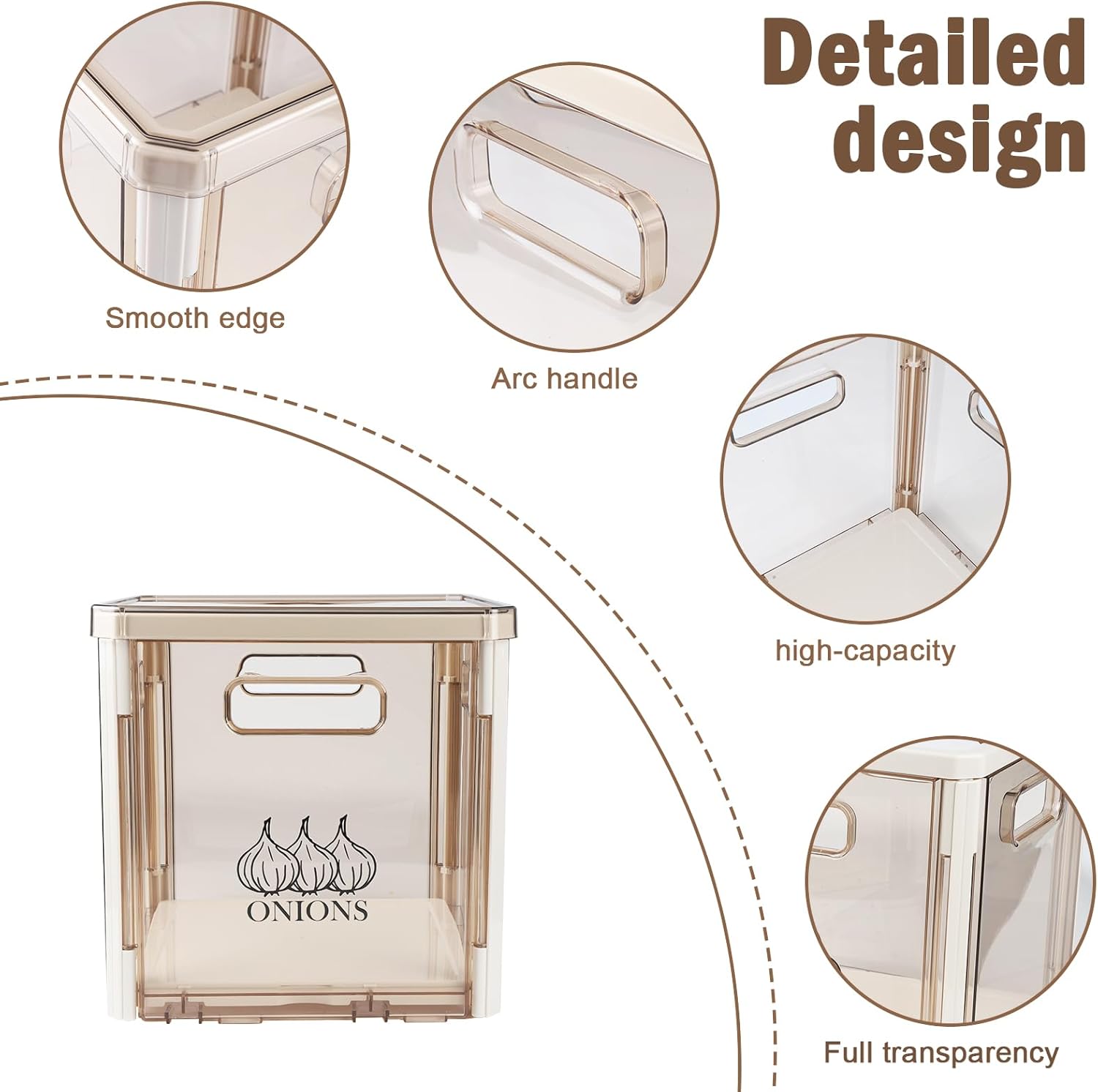 - Practical Design: The potato bins for pantry feature a spacious wide opening, making it convenient to place and accees potatoes and onions. Equipped with side handles for easy movement. The practical design of potato storage makes it a great addition to any home.