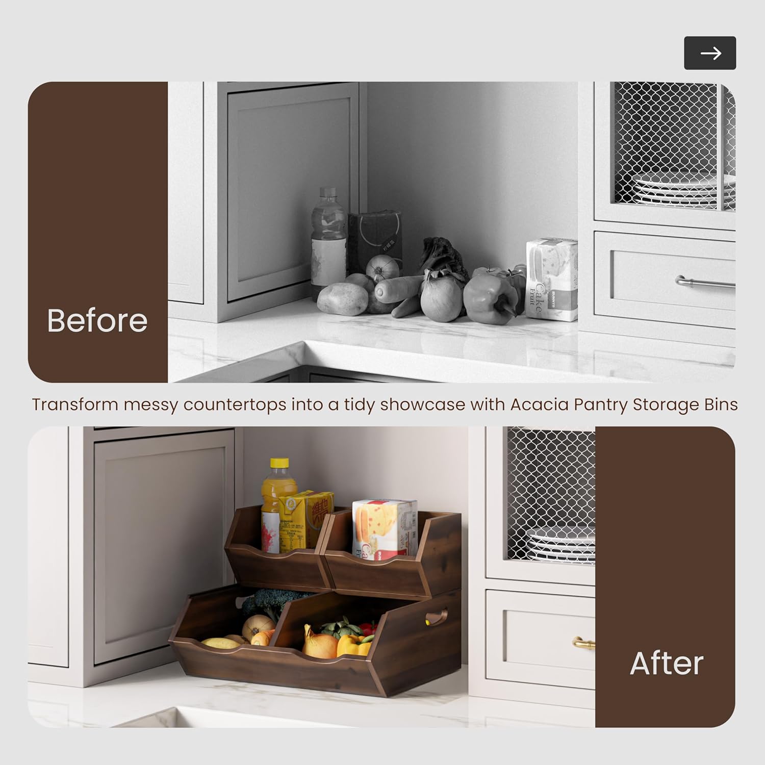 - No Assembly Needed, Stackable Convenience: These wooden stackable storage bins require no setup. Simply stack or separate them for your custom potato storage for pantry or general pantry baskets organization.
