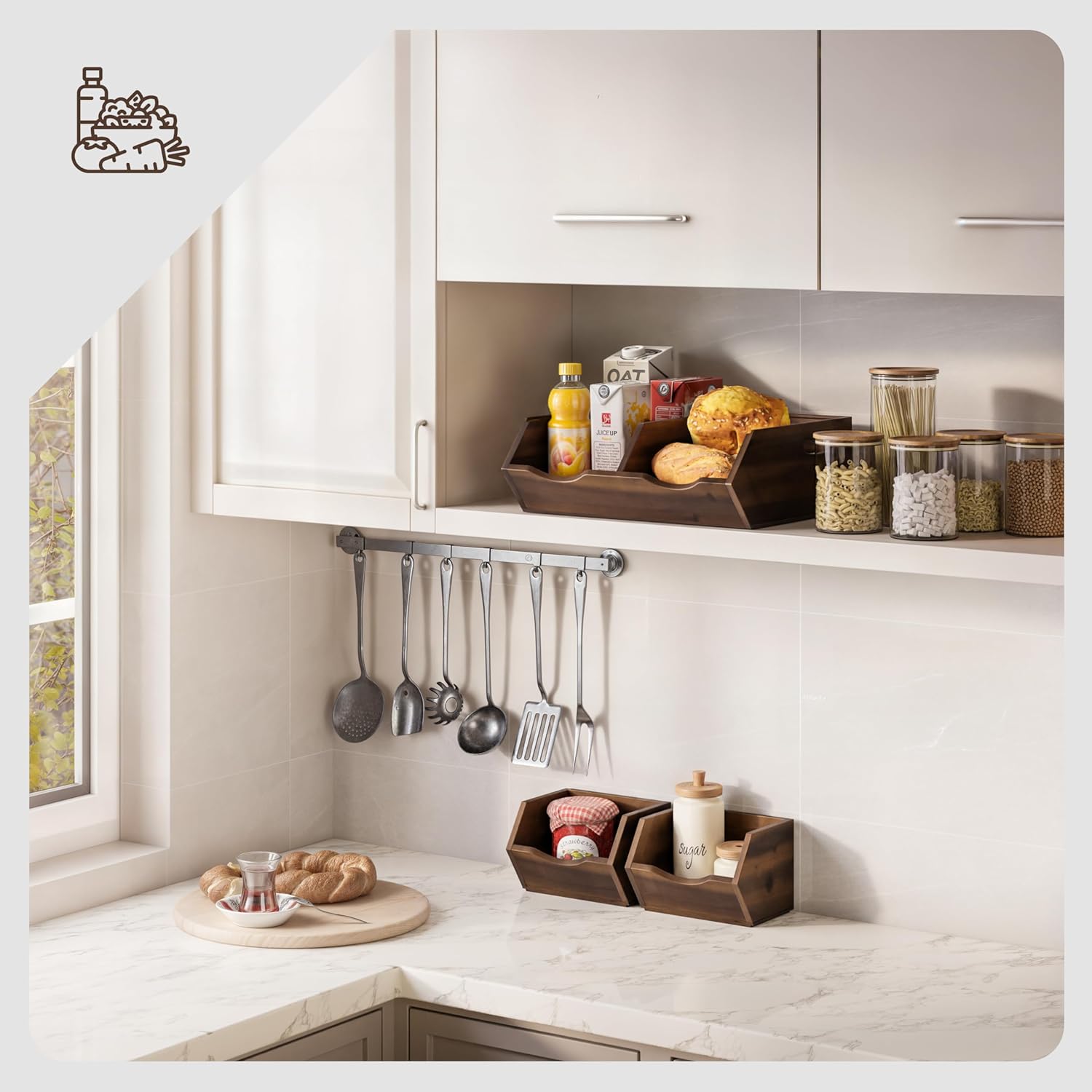 - Durable and Elegant Acacia Wood: Crafted from natural acacia, these wood storage bins add warmth and durability. Their beautiful grain makes them a functional yet stylish addition to any kitchen storage organization setup.