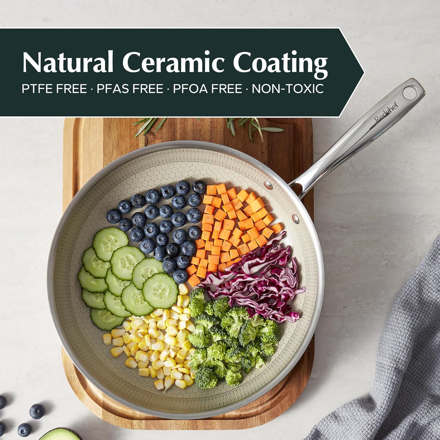 Redchef Hybrid Nonstick Frying Pan 8-Inch with Stainless Steel Stay-Cool Handle, Tri-Ply Stainless Steel & Aluminum Ceramic Coating Egg Pan, Dishwasher & Oven Safe, Induction Compatible, All Cooktops