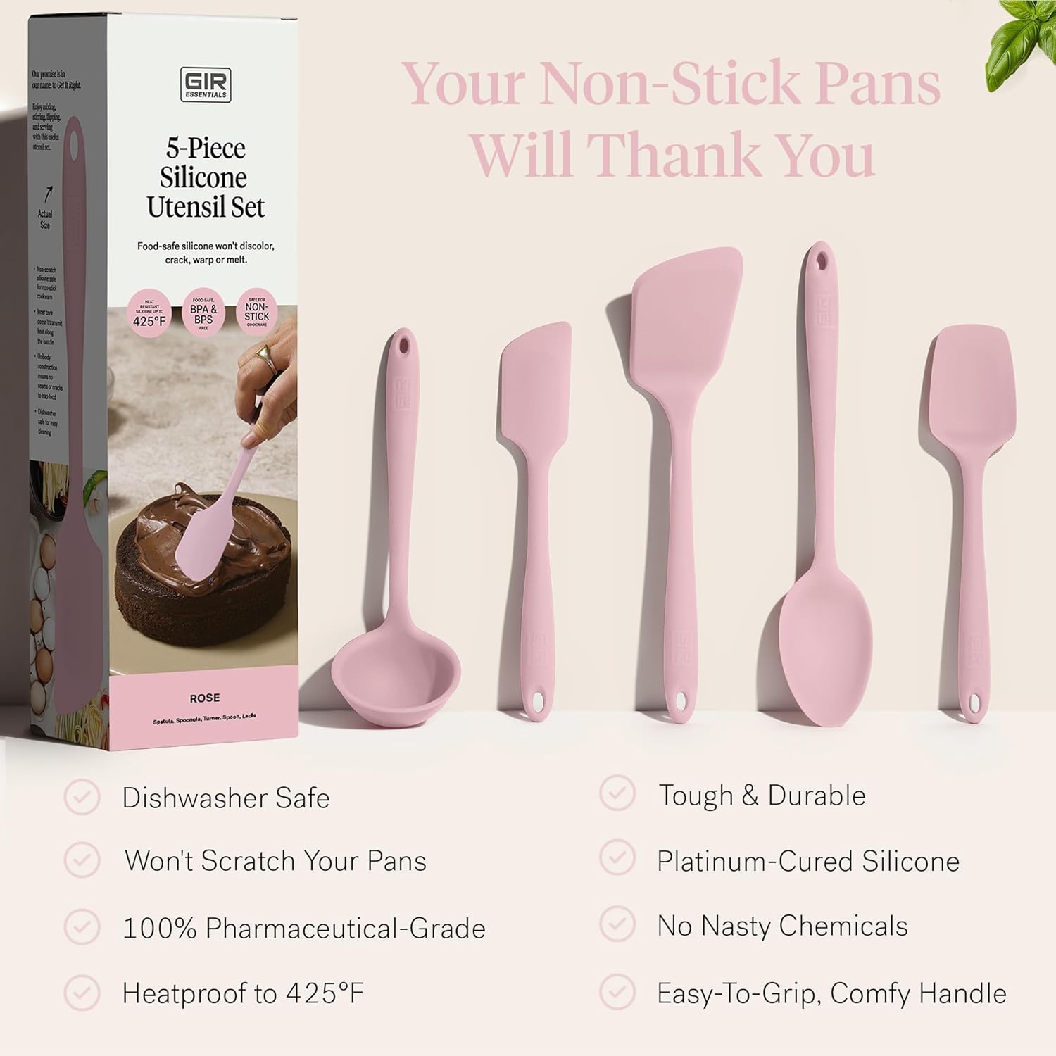 GIR: Get It Right - 5 Piece Essentials All Purpose Set - Ladle, Spatula, Flip, Spoon & Spoonula, Non-stick, Heat Resistant, Dishwasher Safe, Kitchen Utensils, Baking Supplies - Rose