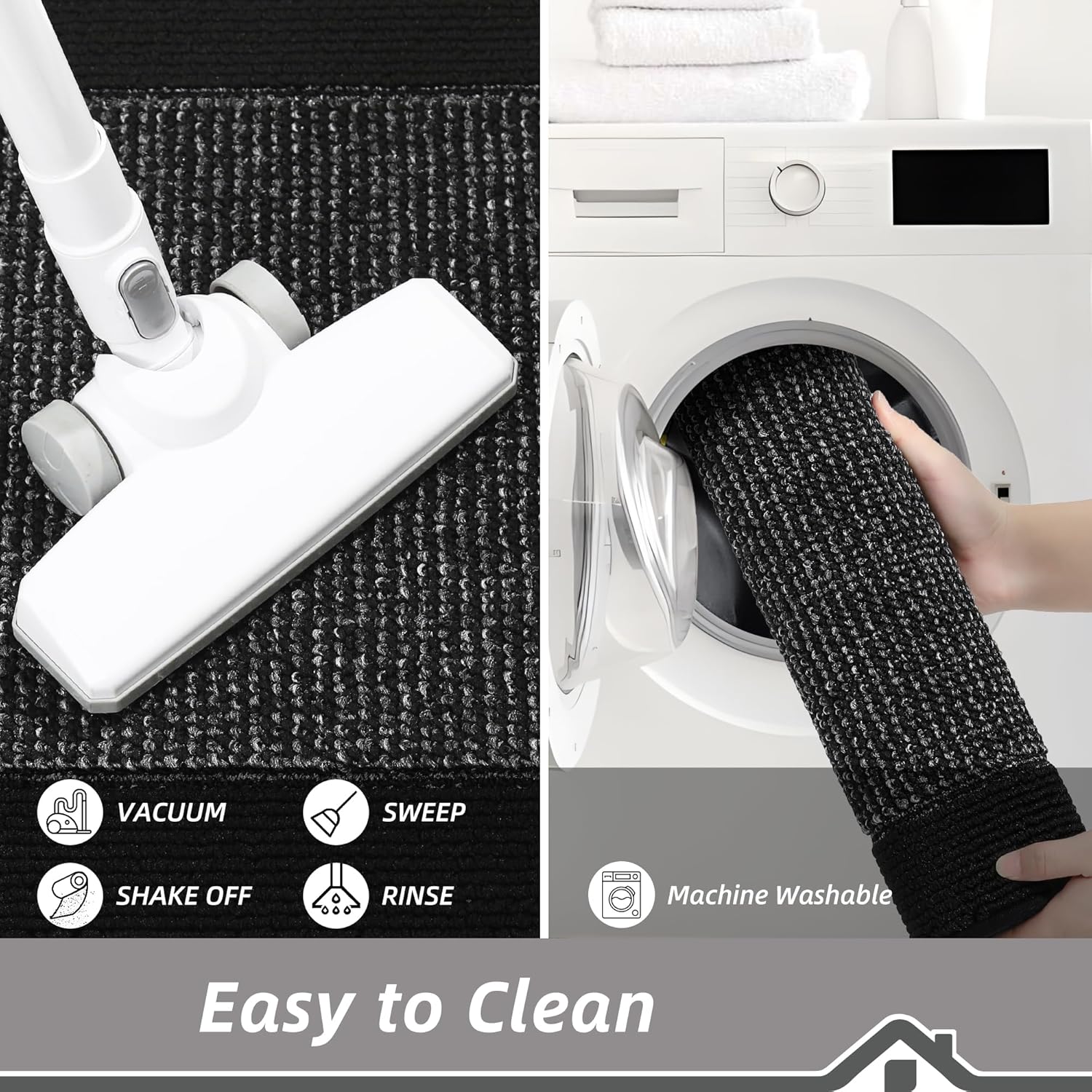 - Easy to Clean: The stain and fade resistant kitchen runner rug can be easily cleaned by a broom or vacuum cleaner. For a deeper clean, machine wash separately in cold water, using mild detergent. Tumble dry, low heat. Do not use bleach or fabric softener