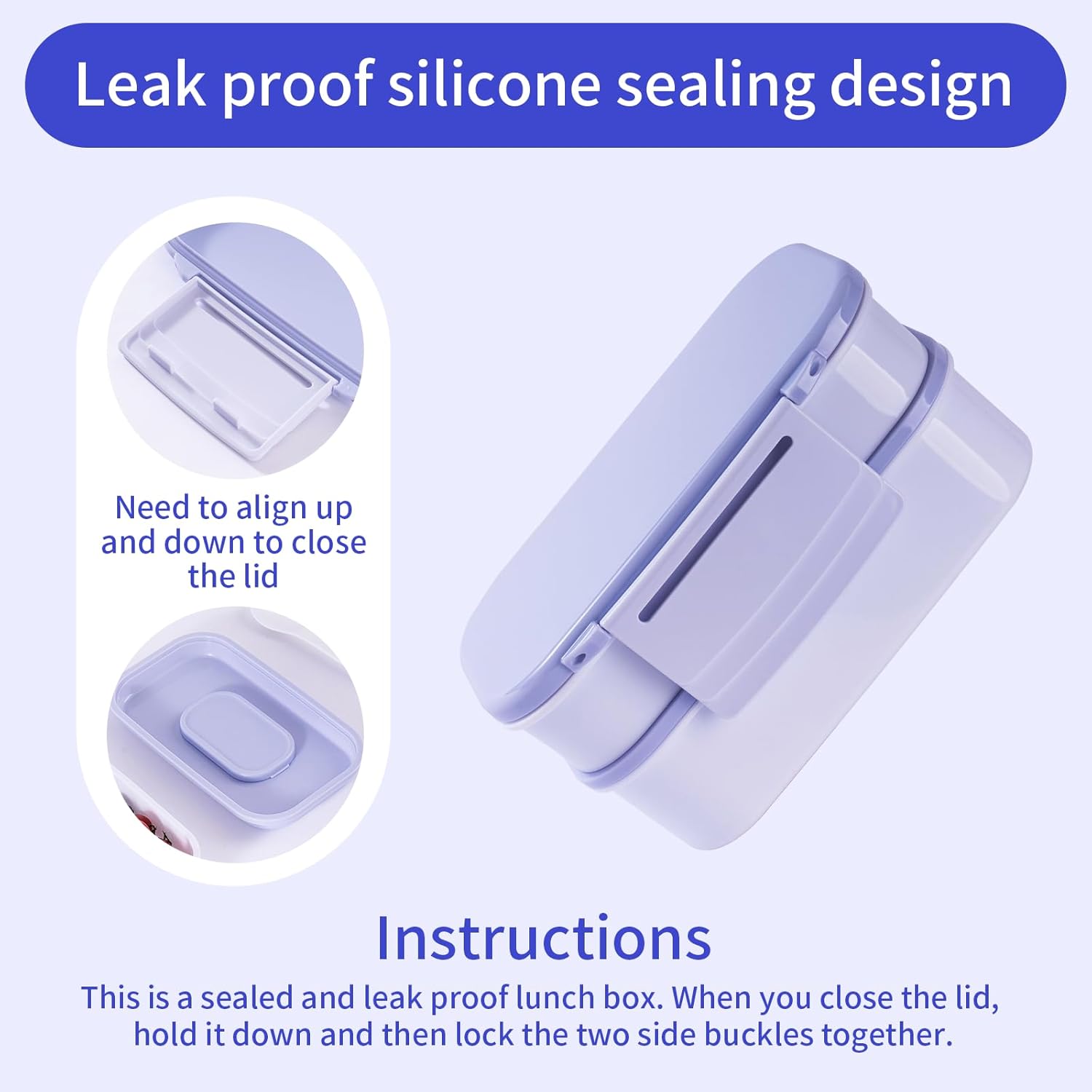 - Large capacity bento box: It has 2 stackable compartments that can accommodate a 48 ounce silicone sealing lid, divider, dipping container, fork, spoon, knife, and sealing tape.