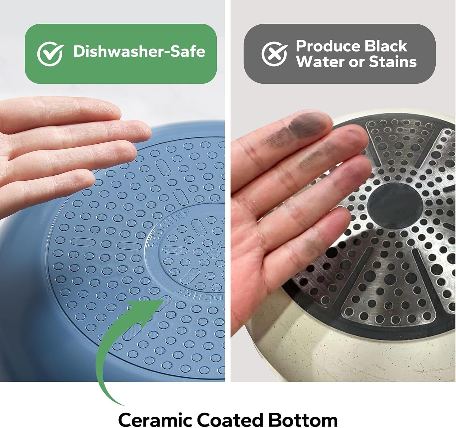 - CERAMIC NON-STICK COATING: Our innovative cooking surface undergoes a triple-layer ceramic coating process, fortified for unmatched food release. The nonstick frying pans excels in delivering outstanding nonstick performance, enabling you to prepare your favorite dishes with minimal oil or butter usage