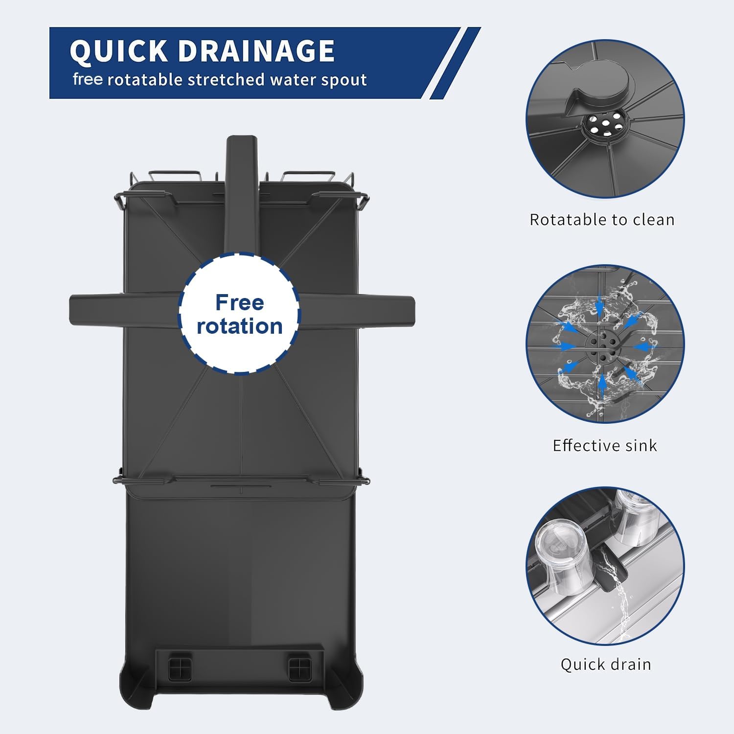 - šćConvenient DrainagećEquipped with a drainboard to gather excess water and a water outlet to lead the water to the sink. The water outlet can be adjusted to suit different sinks.