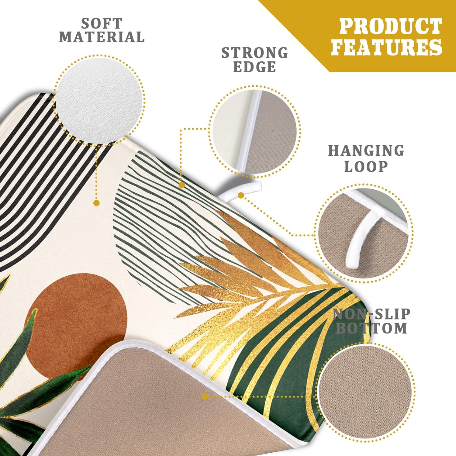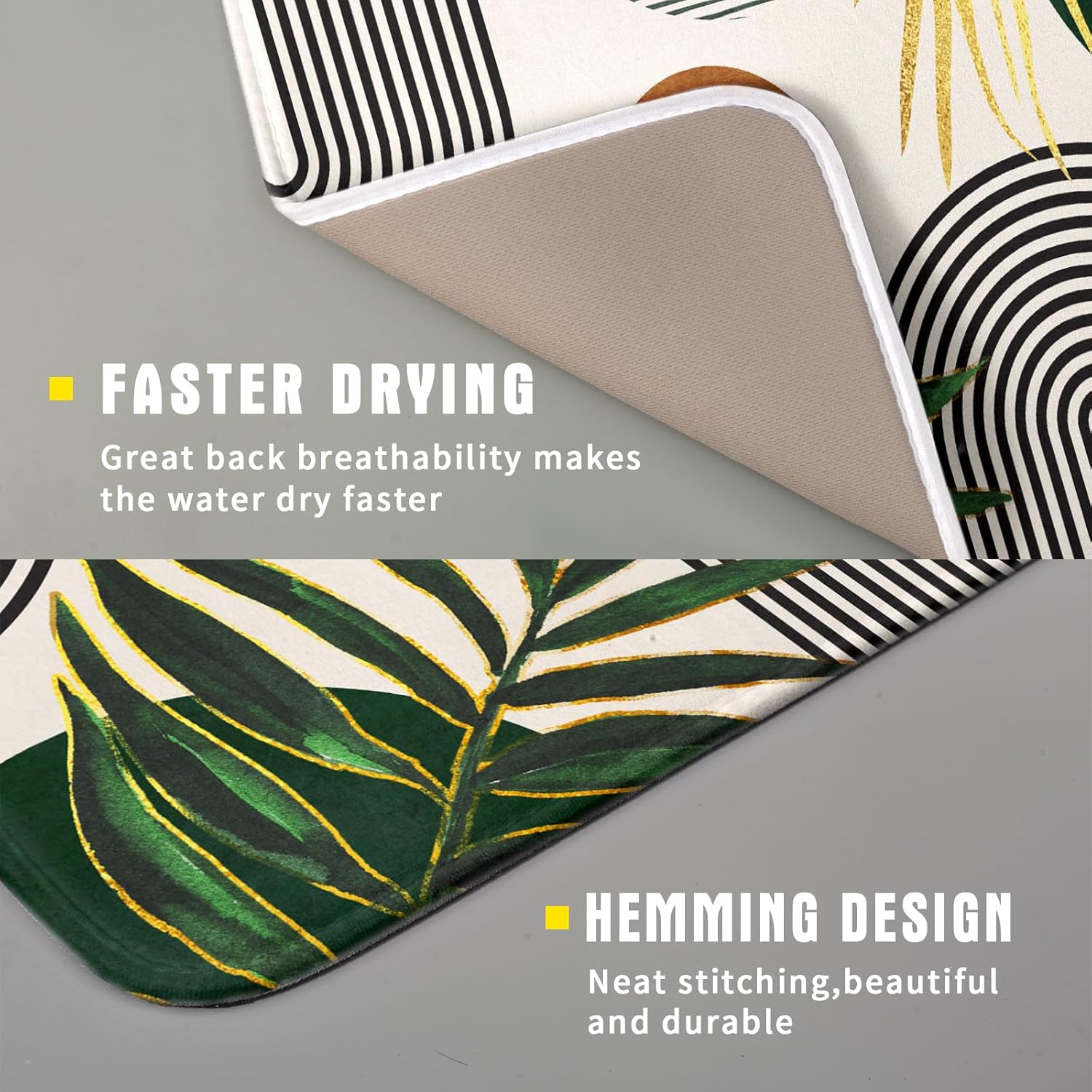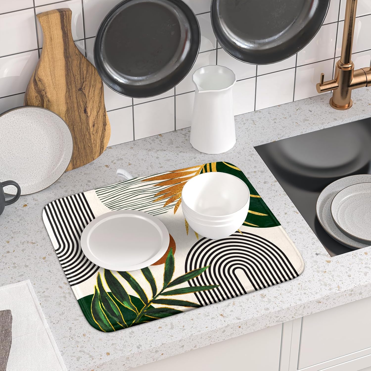 Boho Leaves Dish Drying Mat 16x18 inch Mid Century Absorbent Drainer Rack Mats Fast Dry Bottles Dish Dry Pad Protector Kitchen Accessories