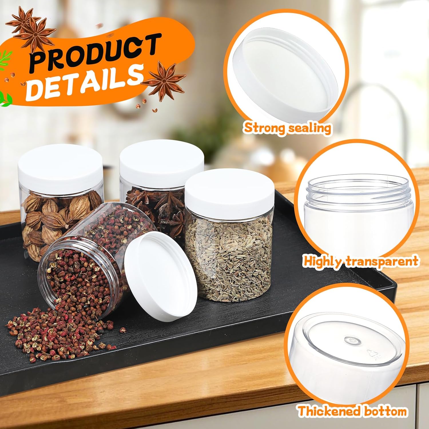 - 【Transparent Clear】 You can see the inside clearly with clear plastic jars, they are practical for you to recognize the things inside the containers, easy for you to find the items you need quickly