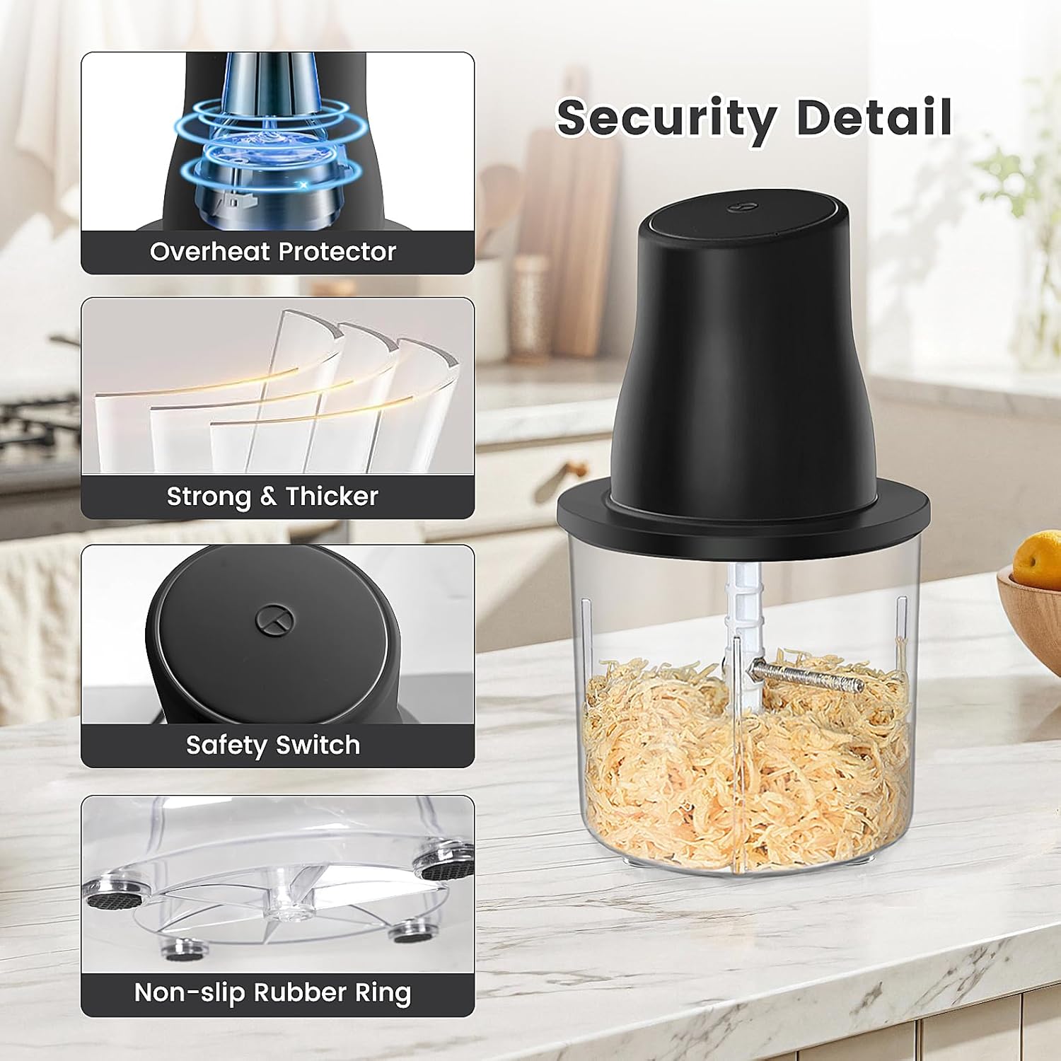 - 250W Super Powerful Motor: It is powered by a powerful 250w motor, which can easily and efficiently process all kinds of chicken, pork, beef, vegetables and nuts, achieving 60% faster chopping efficiency than lower-power models, widely applied for enchiladas, tacos, and BBQ pulled pork, tuna salad, buffalo chicken salad, casseroles