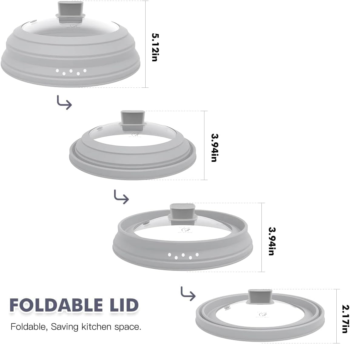 Microwave Splatter Cover Glass Cover Guard Lid with Collapsible Silicone for Food Pot Plate Cover 11.8 inch Light Grey