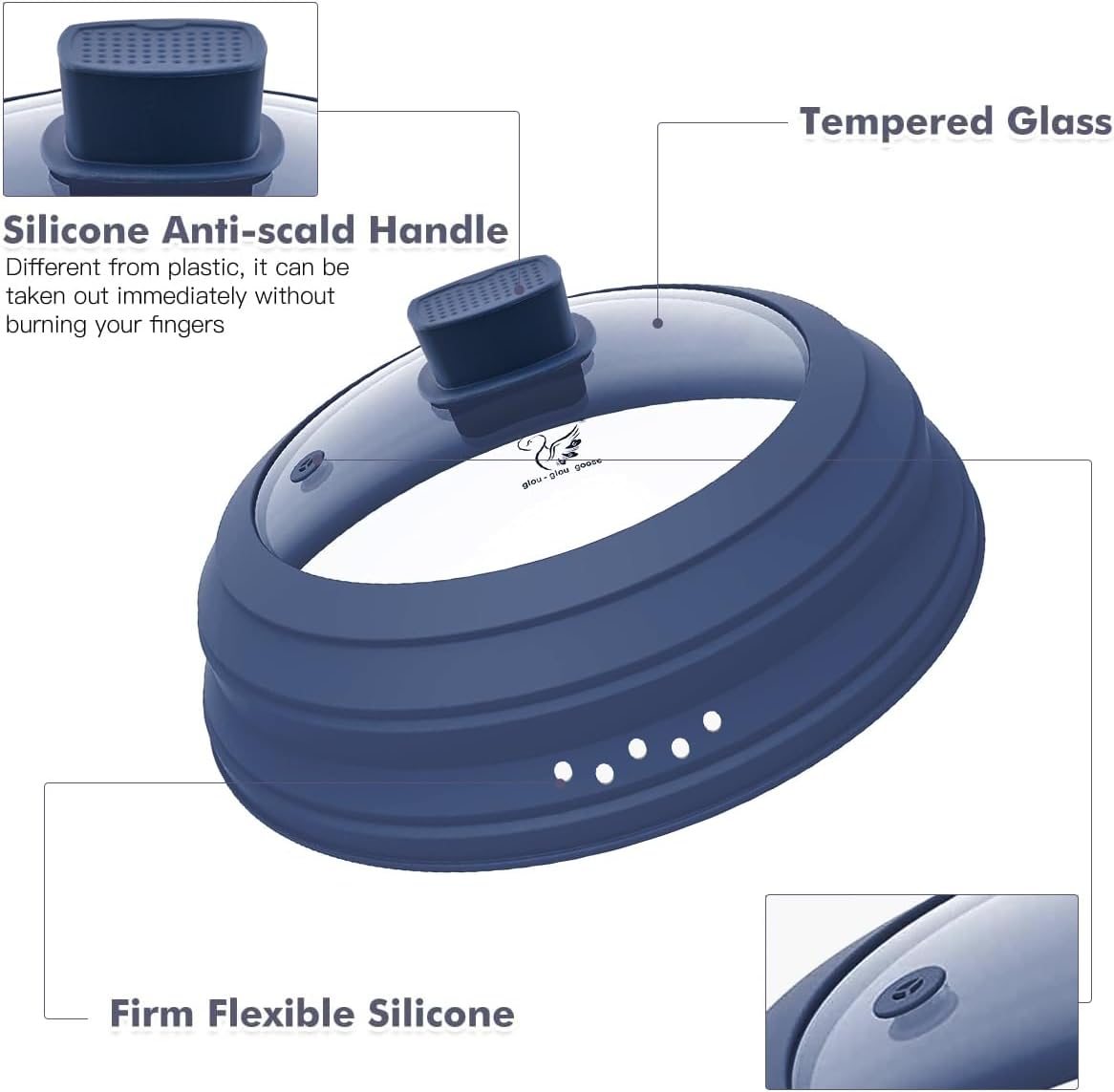 Microwave Splatter Cover Glass Cover Guard Lid with Collapsible Silicone for Food Pot Plate Cover 10.8 inch Dark Blue