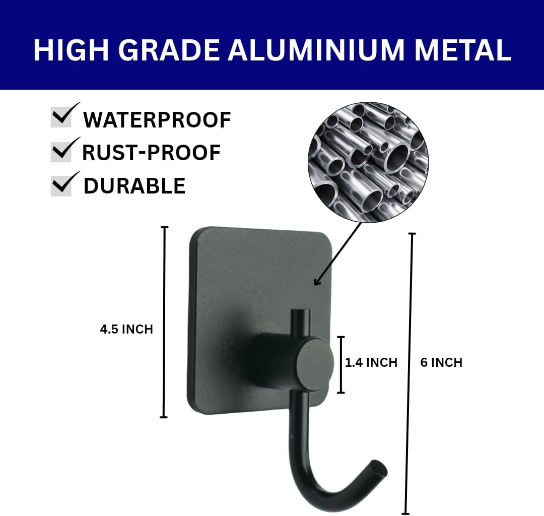 - Waterproof and Rust-Resistant – Perfect for Bathrooms and Kitchens : Built to thrive in high-moisture areas, our adhesive wall hooks are waterproof and rust-resistant, making them the ideal solution for organizing your bathroom, laundry room, or kitchen. Unlike metal hooks that rust over time, our premium black finish remains clean and sleek even in steamy or humid environments.