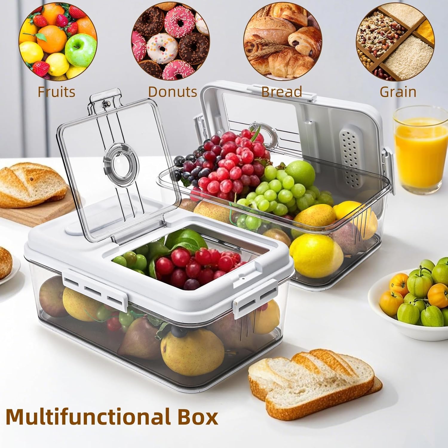 - Multifunctional Bread Box: DEAYOU bread keeper can not only store bread but also snacks, fruits, vegetables, grains and more, and comes with a measuring cup for scooping grains. Perfect for extending food storage time and reducing food waste, it helps keep your kitchen tidy and fresh