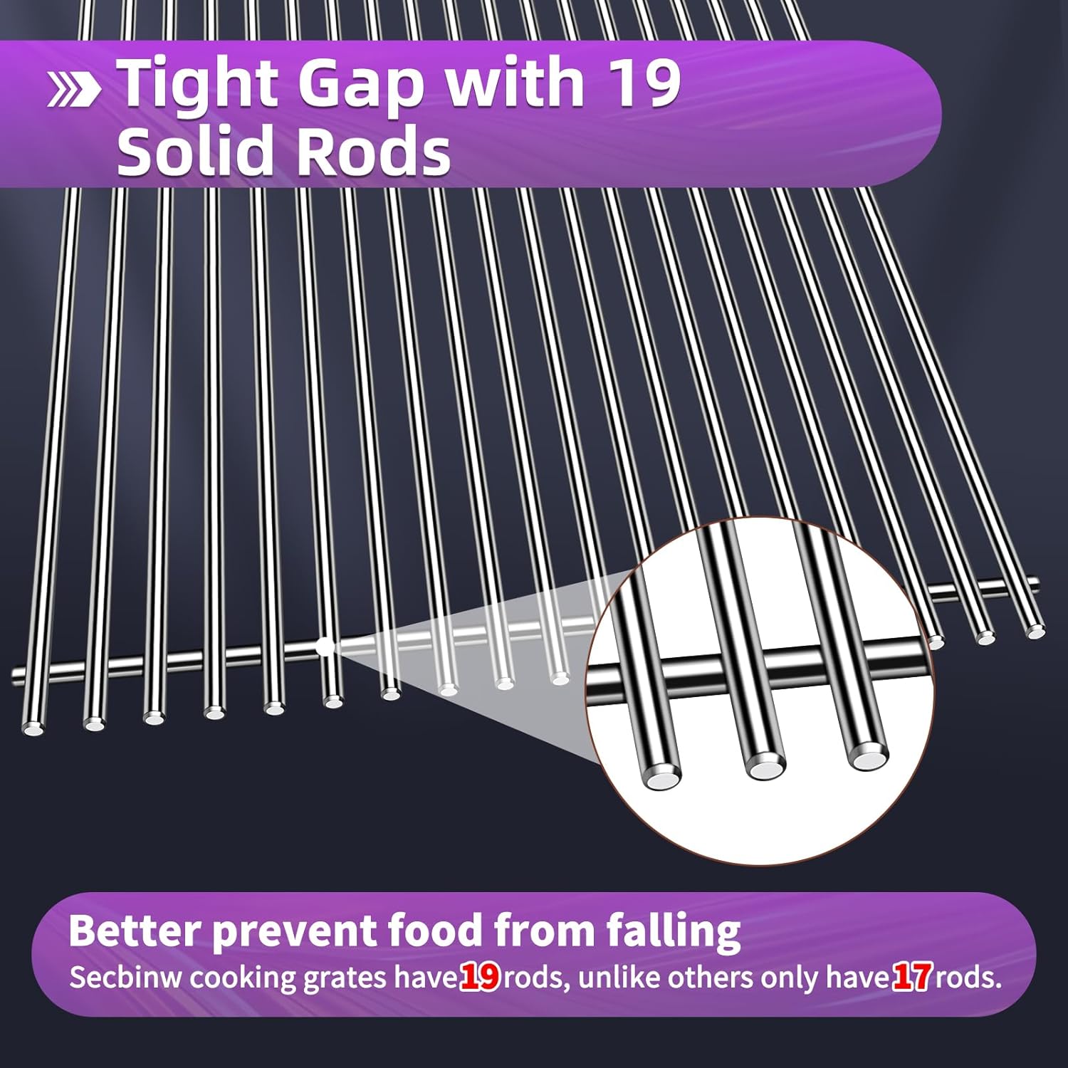 - 【Safe Material & Protect Your Hands】Dictirdy grill replacement parts are made of high-quality 100% food grade 304 heavy stainless steel and well-engineered to prevent rust, which is durable with uniform heating and high corrosion resistance, much more heavier and heavy duty. Our cooking grill grate with edge grinding design is free of sharp edges, made with nice welds and smooth surface, no sharp edges and will not hurt your hands. Best choice for your weber genesis grills.