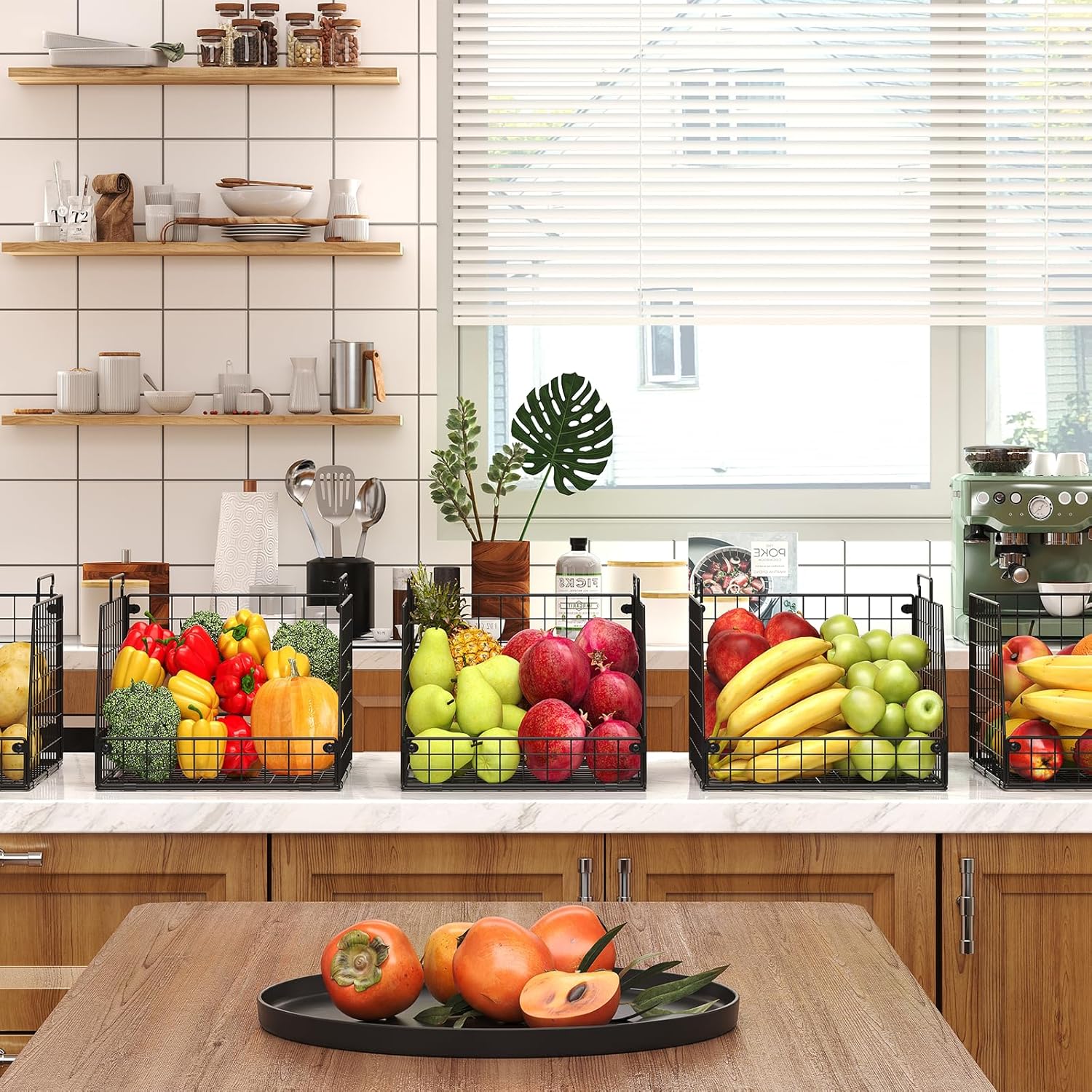 - 【Stackable Kitchen Basket】 Each fruit basket for kitchen counter can be used individually or stacked to save you space. Each storage bin has an open front, making it convenient to view and access items.