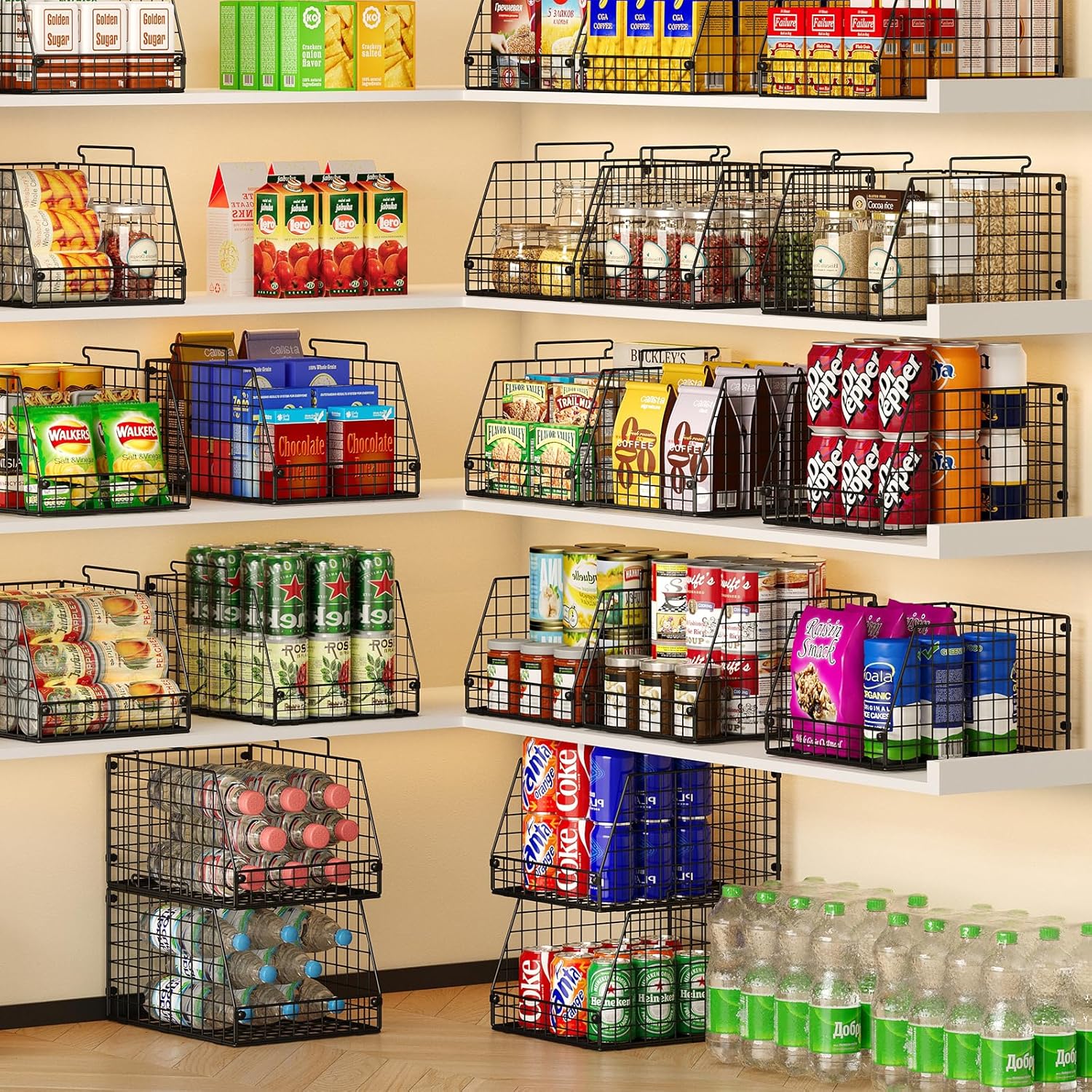 5 Pack XXL Stackable Wire Storage Basket, Extra Large Capacity Pantry Organizer and Storage, Muti-Purpose for Fruit Vegetable Basket & Toy Bin & Snack Organizer