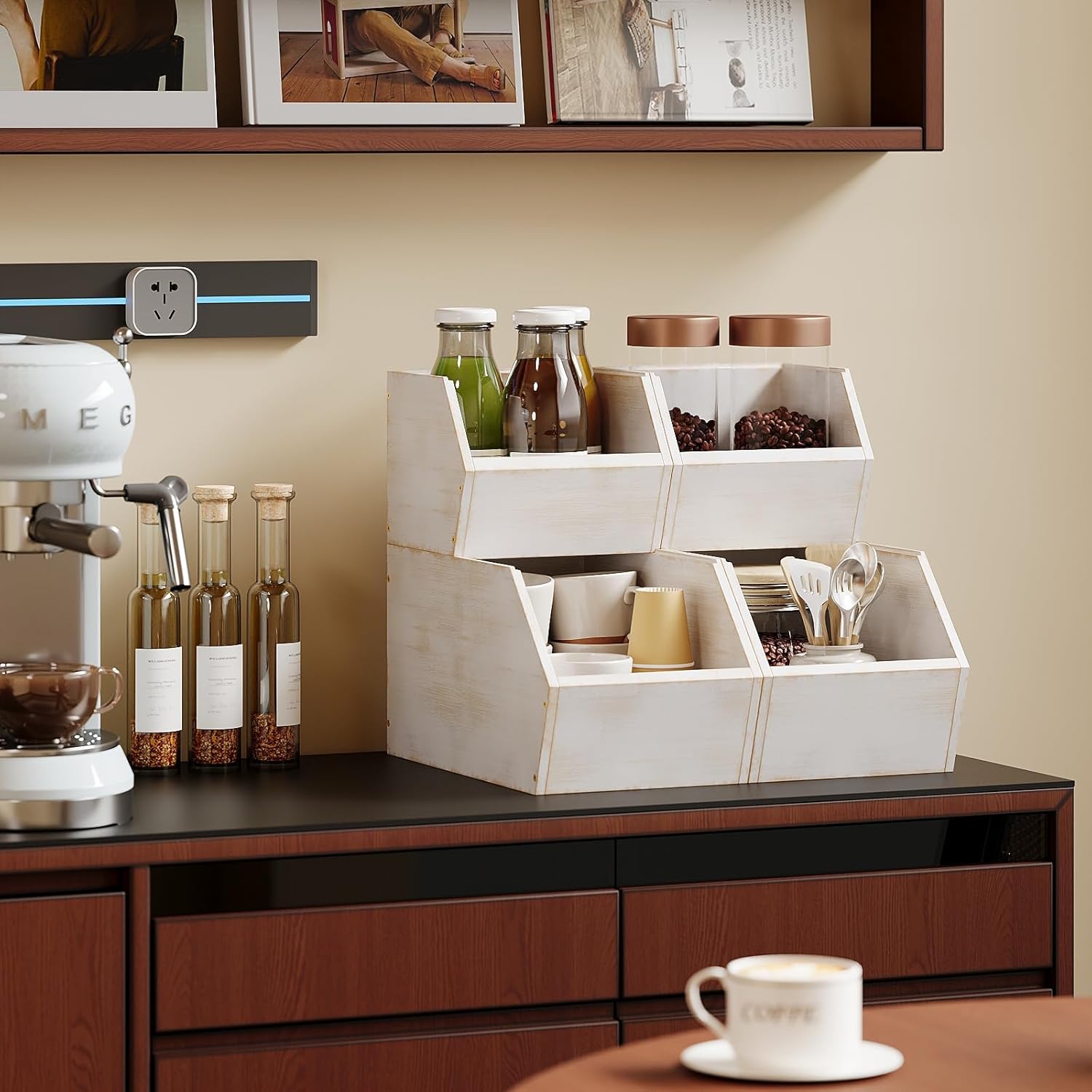 2 Set Bamboo Pantry Storage Bins Wood Stackable Baskets Potato and Onion Storage Bins Fruits Vegetable Bread Organization for Kitchen Counter