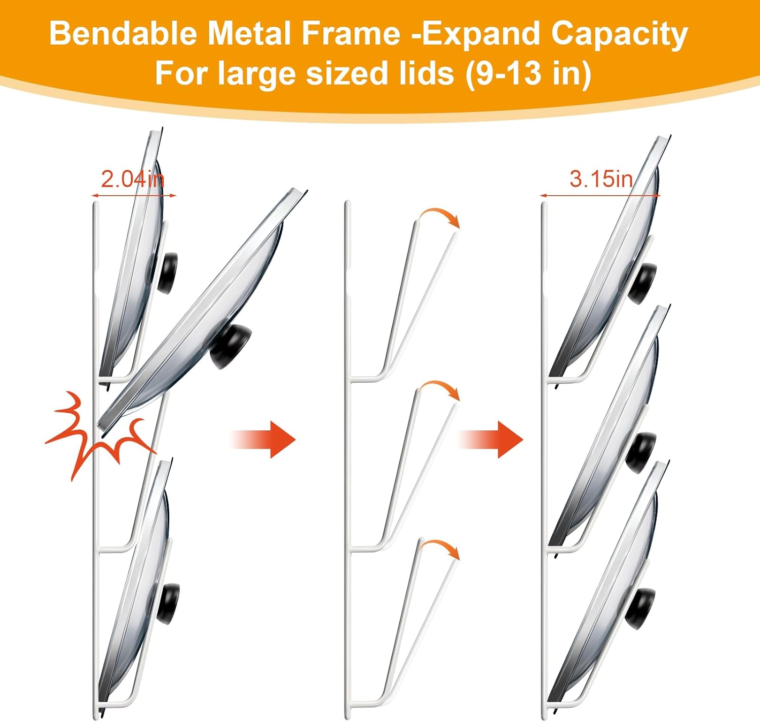 - LOSSLESS INSTALLATION: The 5.9-inch adhesive for smooth cabinets, or screw for textured walls/tiles. Install a wall mounted pot lid holders, and reheat leftovers faster than in the microwave! Great for use as a pots lid organizers inside cabinet