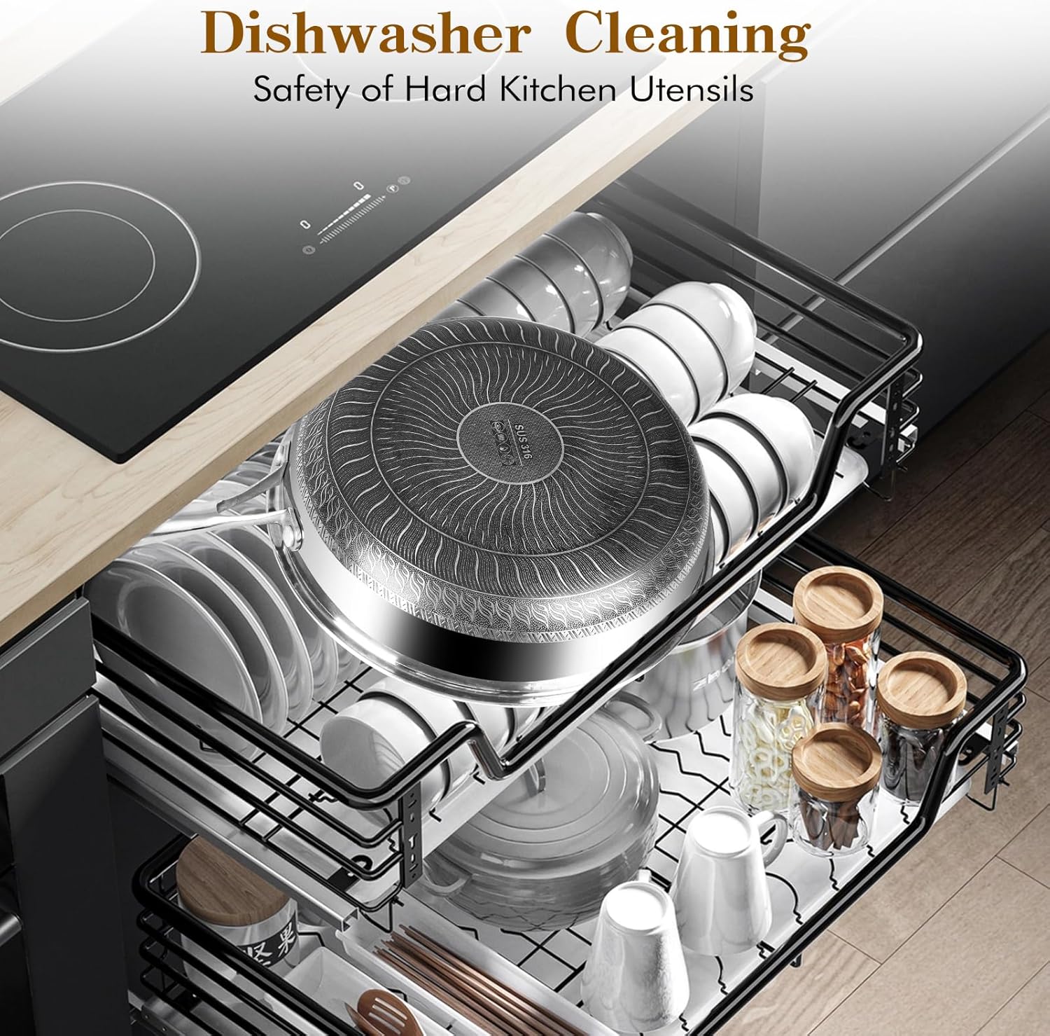 - ăNo chemical coating, Healthy cooking-Technology for Superior CookingăOur skillet features advanced tri-ply construction, combining aluminum sandwiched between two layers of high-quality stainless steel. This innovative design enhances conductivity for even heating while providing the durability and searing power of stainless steel
